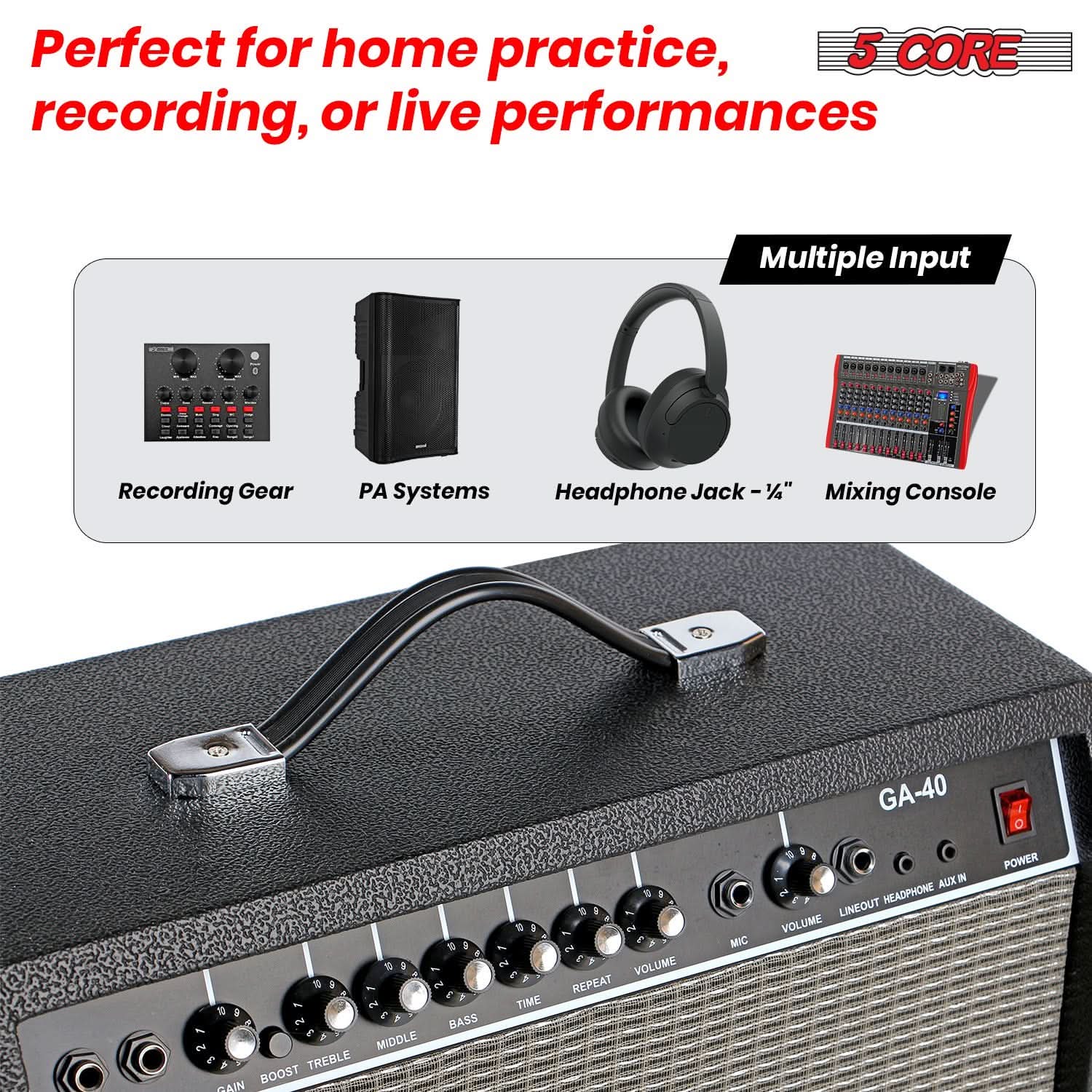 5 Core Guitar Amp 40W Electric Bass Acoustic Portable Amplifier Practice Amplificador
