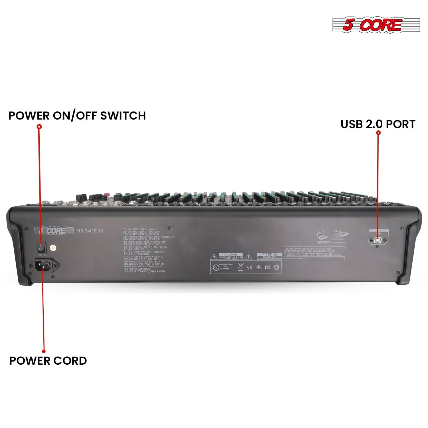 5Core DJ Audio Mixer 24 Channel Stereo Sound Board w 256 effects USB Bluetooth 48V Phantom Power