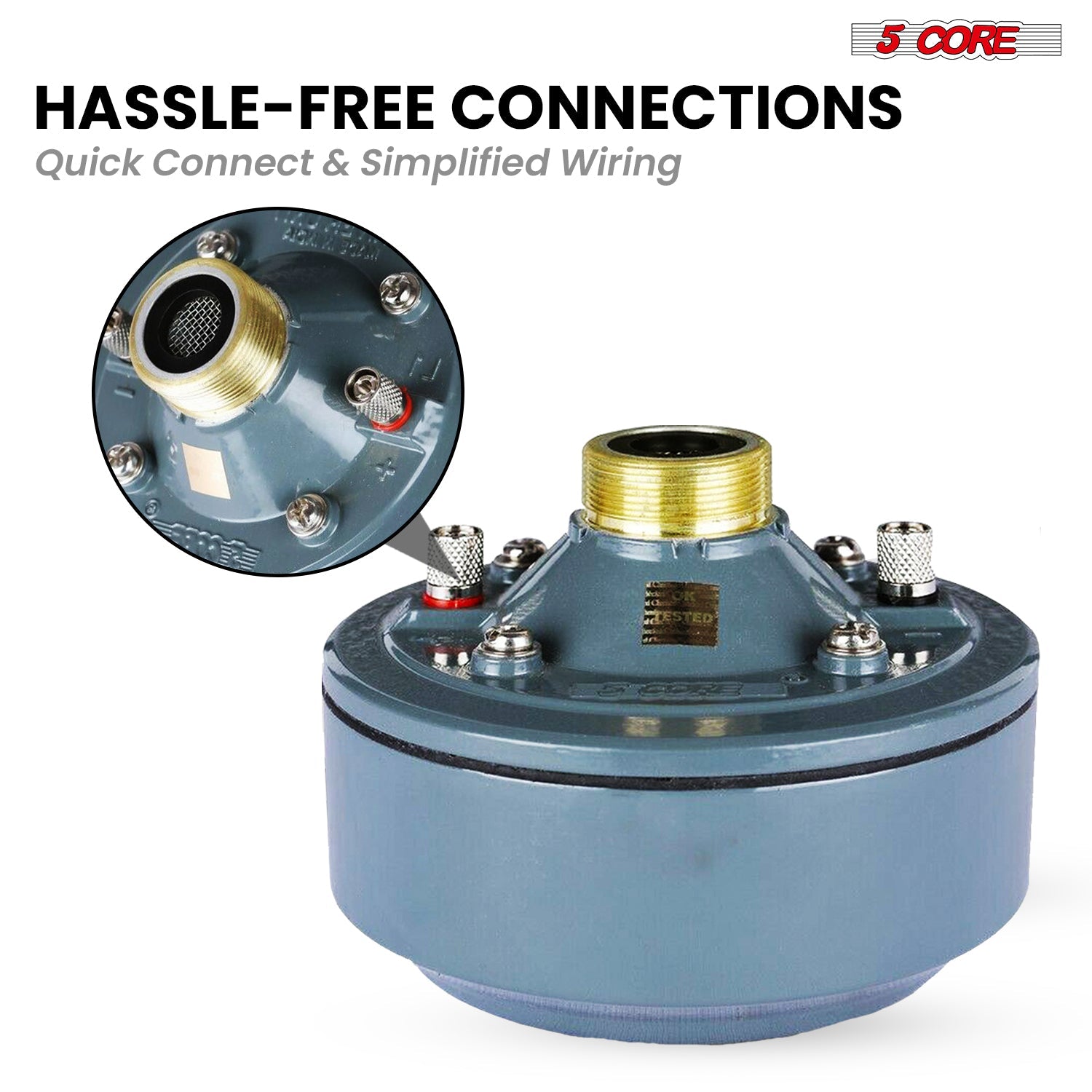 The tweeter horn driver with 4.1 inch depth and 4.3 inch width, 18 TPI threading simplifies installation. |
