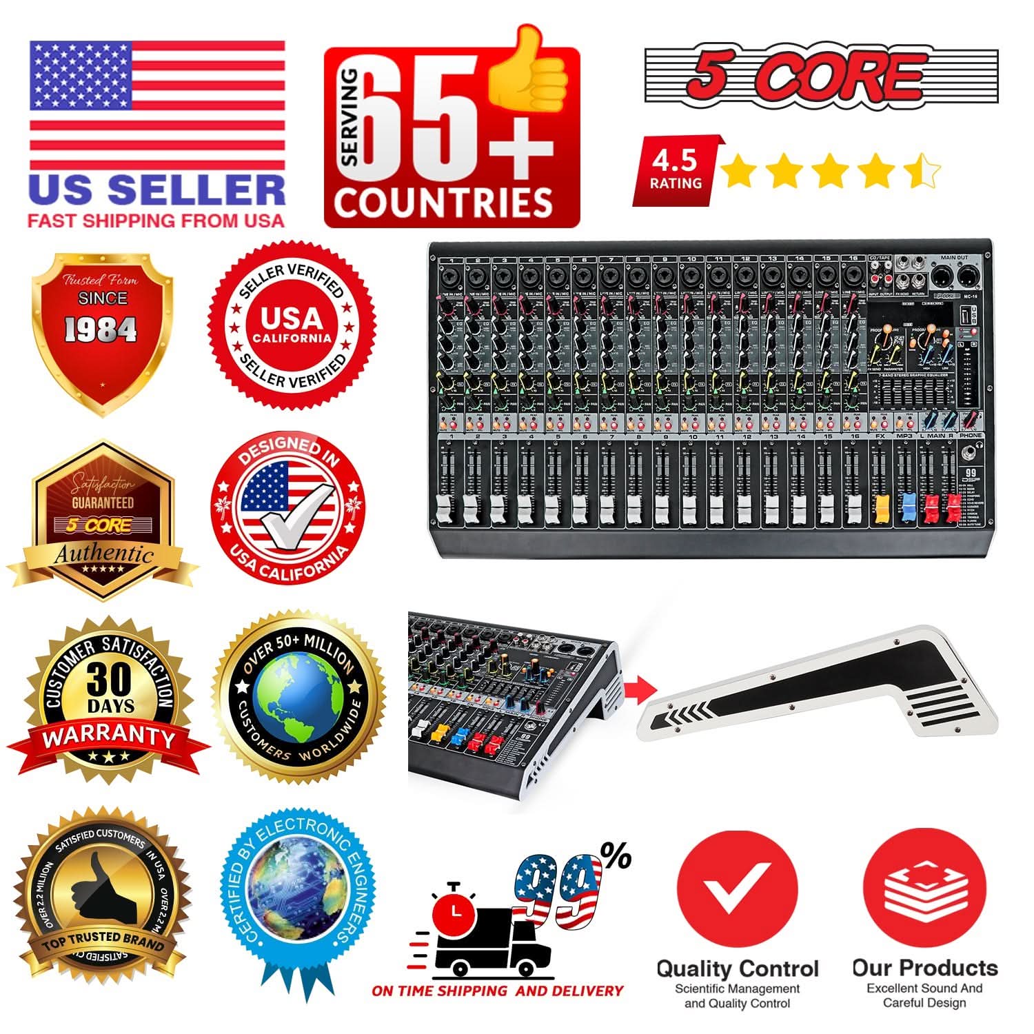 5Core Audio Mixer 16 Channel DJ Mixing Board Bluetooth USB Analog Professional Mezclador De Audio