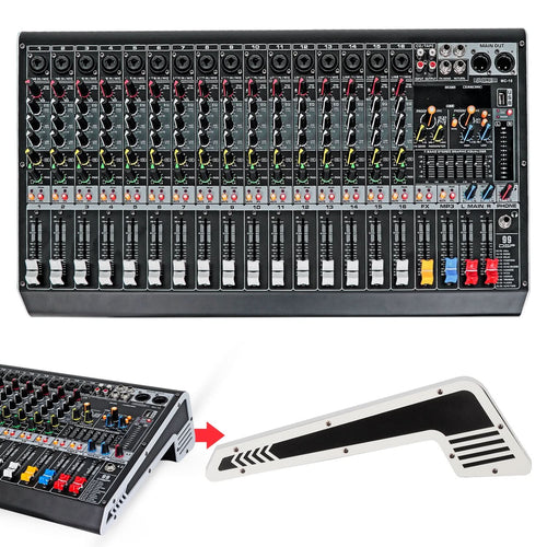 Professional Audio Mixer Board】– 16 Channels, precise 3-band EQ, and 48V phantom power for condenser mics.
