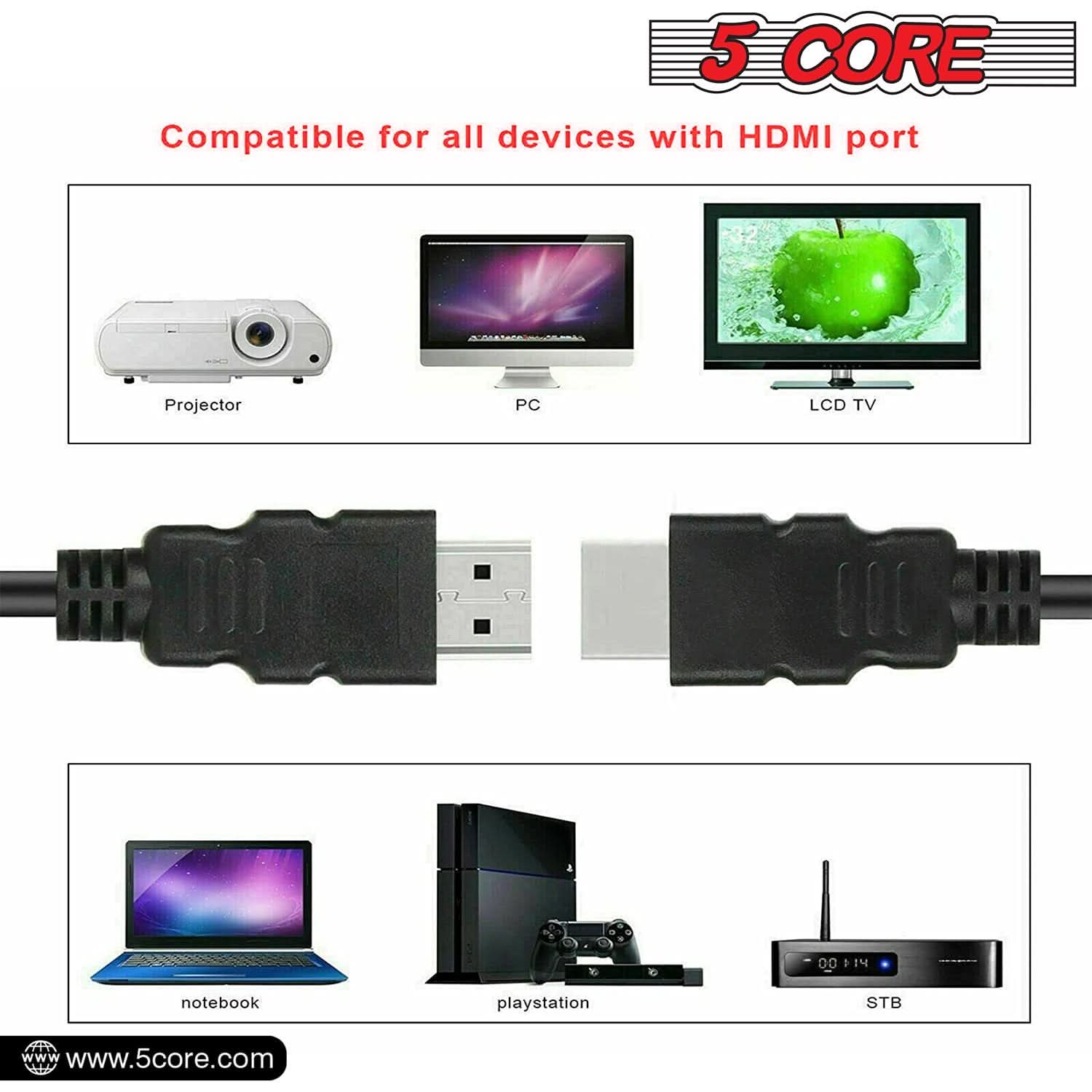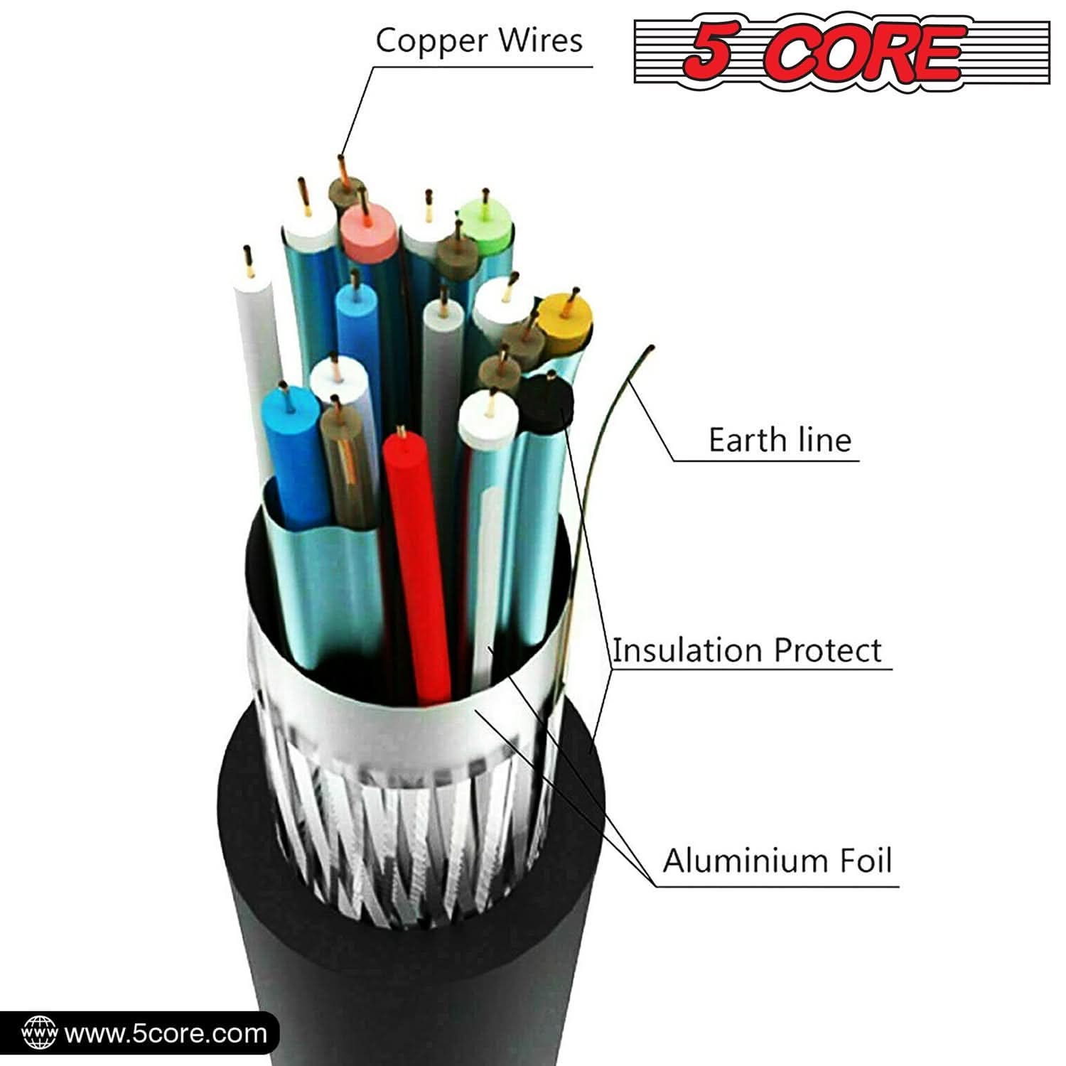 5 Core HDMI Cable High Speed 6 Feet long 18Gbps 2.0 4K Computer Cord at 60 Hertz HDR Compatible