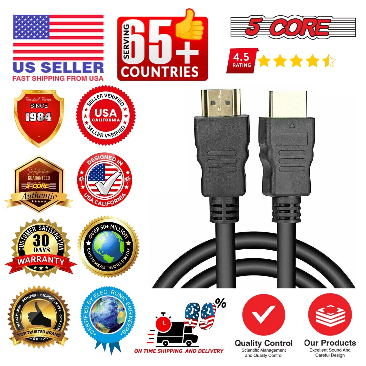 5 Core, ISO Certified headquartered in California, warehouse in Ohio, USA. Offering 600+ products since 1984. Tested and Certified Products, ensuring highest quality and reliability. |