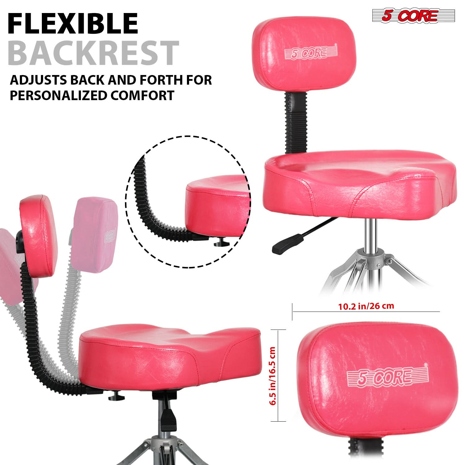 5 Core Drum Throne w Backrest 4" Padded Stool Adjustable 24.5" Drummer Chair w 441Lb Capacity
