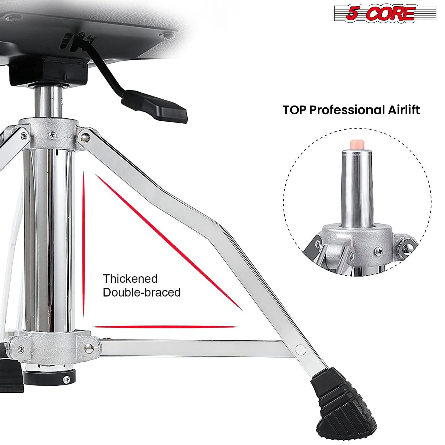 5 Core Drum Throne w Backrest 4" Padded Stool Adjustable 24.5" Drummer Chair w 441Lb Capacity