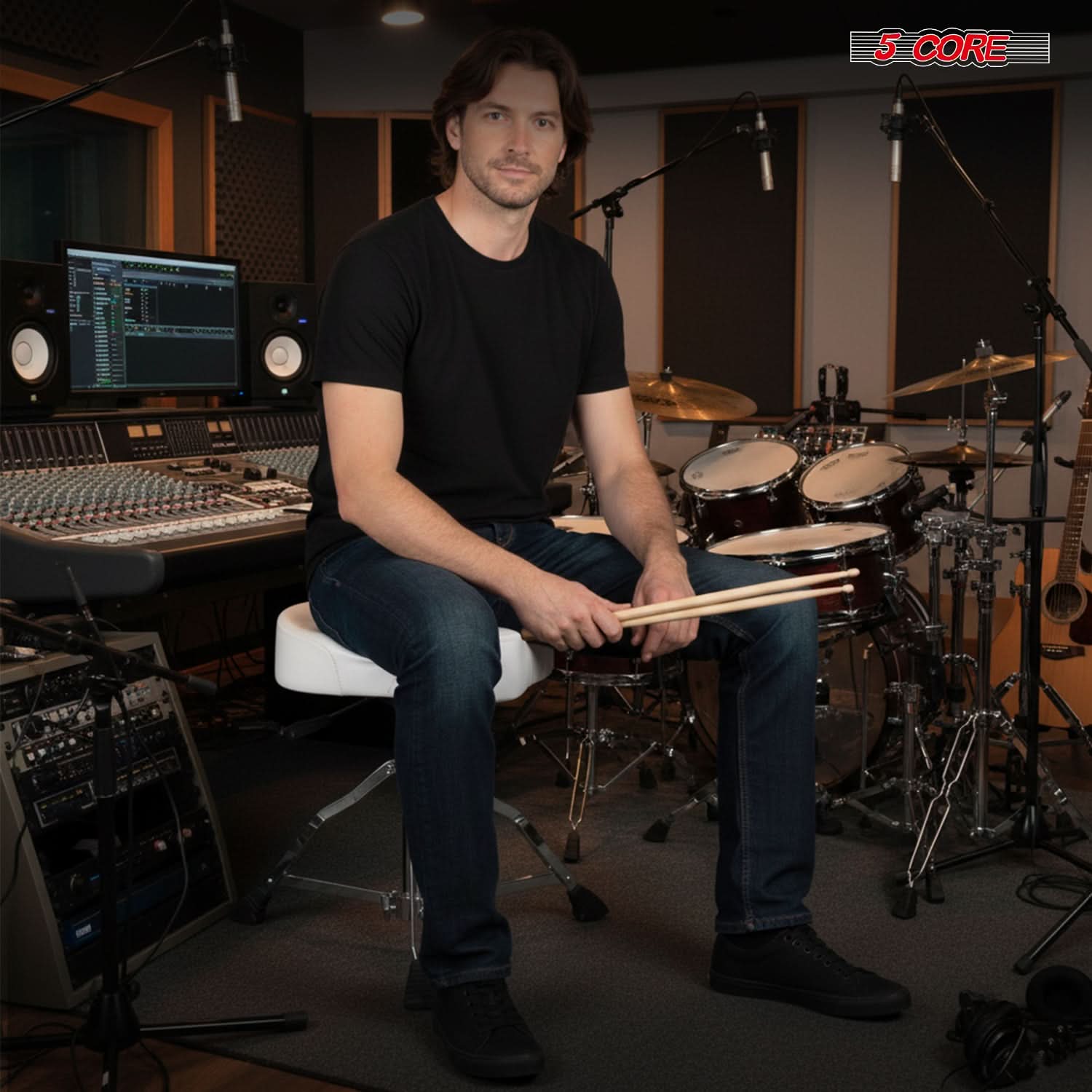 【Ergonomic & Comfortable Drum Throne】 Enjoy long jam sessions with this 4” thick high-density foam seat, designed for superior comfort and support. The 17 x 15” saddle-shaped drum seat evenly distributes weight, reducing tailbone pressure and ensuring a fatigue-free performance. Perfect as a drum throne, drum seat, or musician stool.