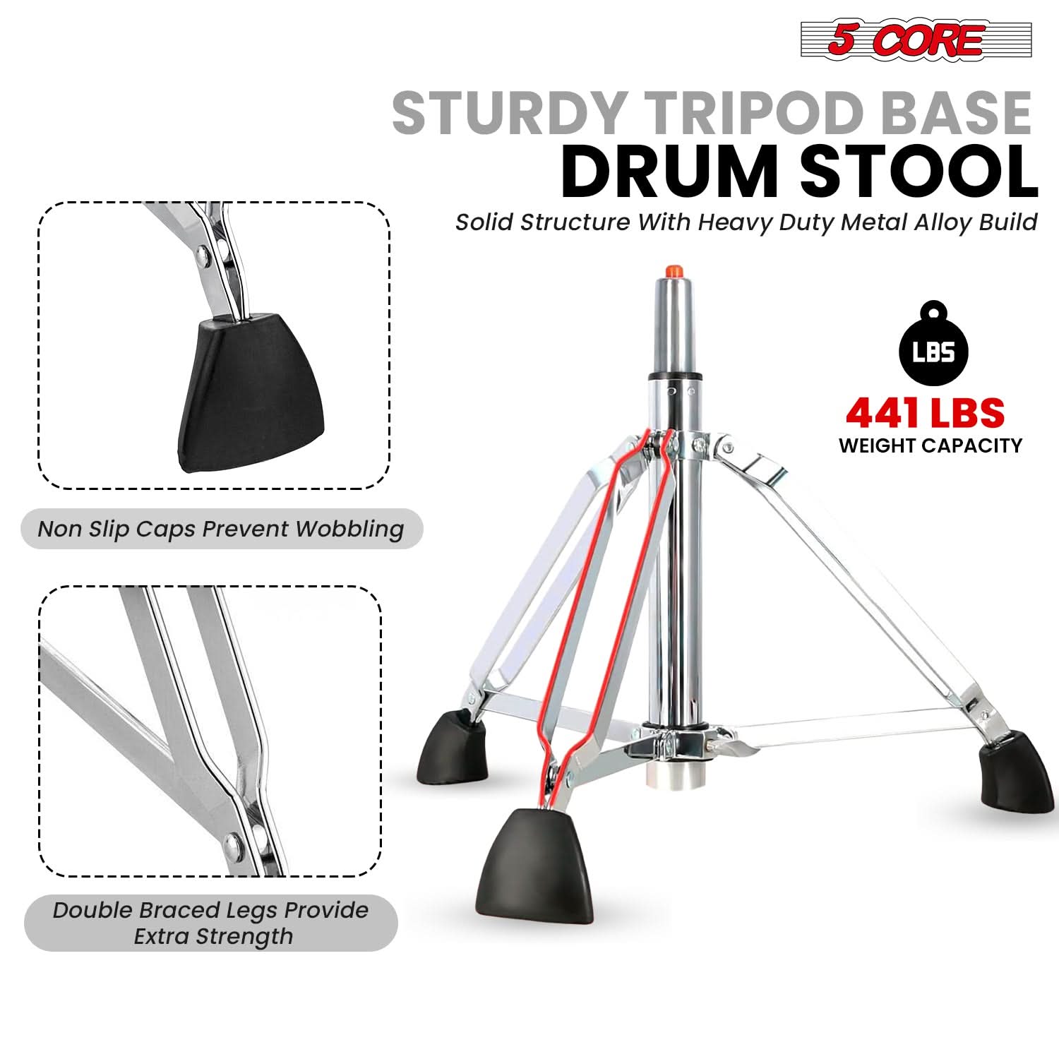 【Heavy-Duty Build & Stability】Built with robust double-braced steel legs and anti-slip rubber feet, this stool ensures excellent balance and prevents sliding during energetic performances. Supports up to 441 lbs with no wobble or tip-over risk.