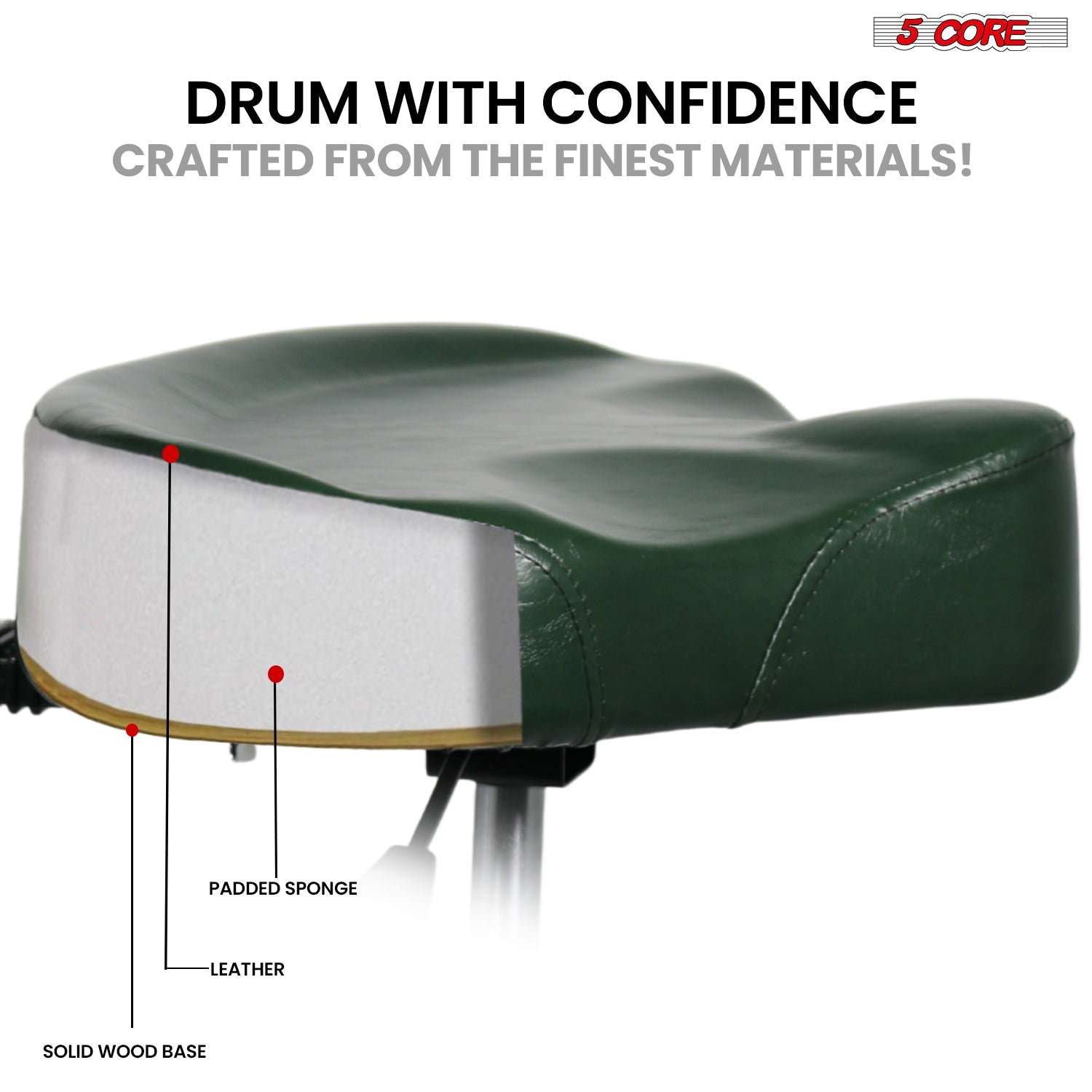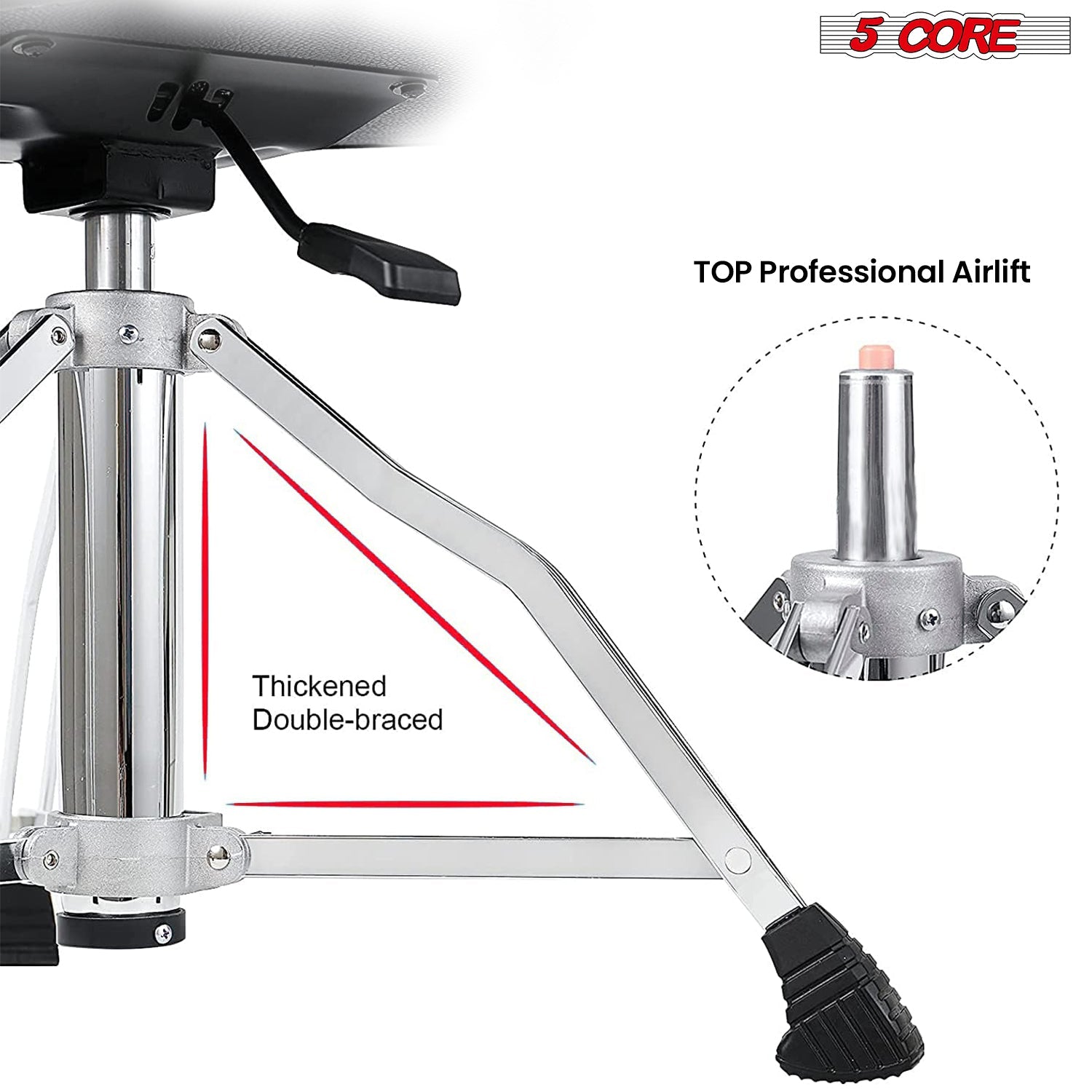 5 Core Drum Throne w Backrest 4" Padded Stool Adjustable 24.5" Drummer Chair w 441Lb Capacity