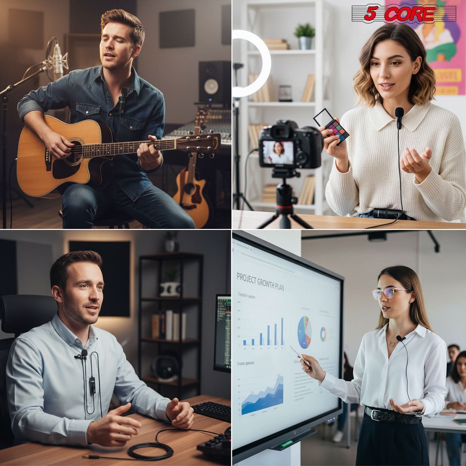 Ideal microphone for phone, camera, or computer. Great for vlogging, podcasts, live streaming, and online meetings. |
