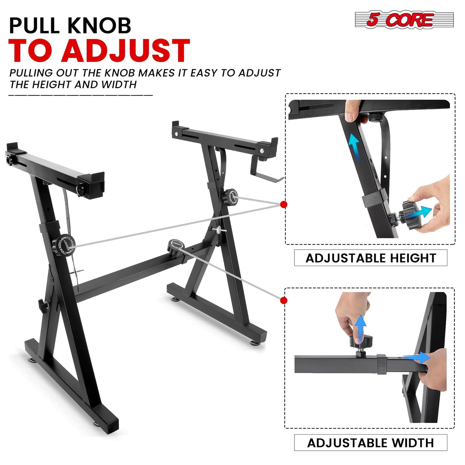 5Core Keyboard Stand Adjustable z Style Piano Riser BLACK + Keyboard Piano Bench BLACK