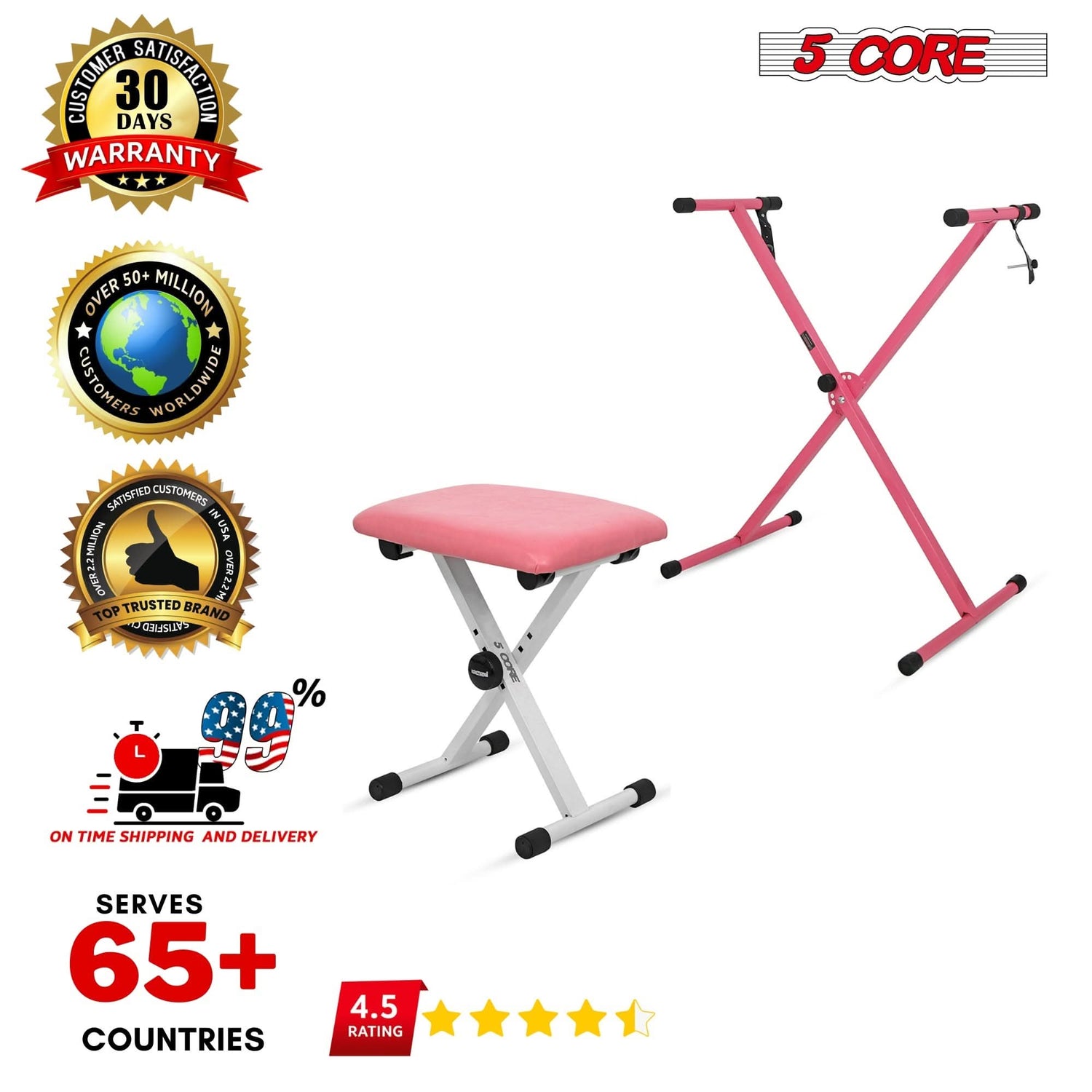 5Core Keyboard Stand Single X Style Adjustable Piano Riser + Keyboard Piano Bench