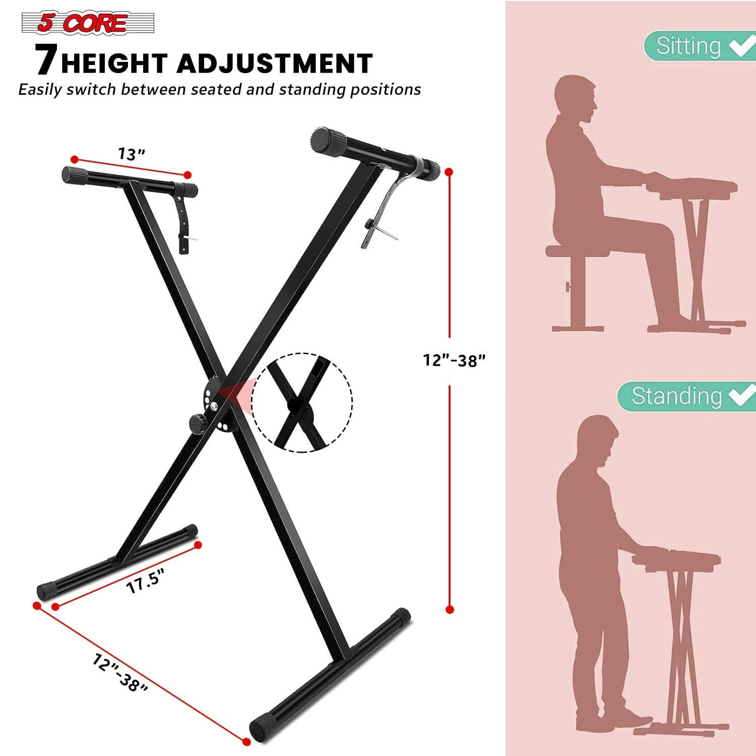 5Core Keyboard Stand Single X Style Adjustable Piano Riser + Keyboard Piano Bench
