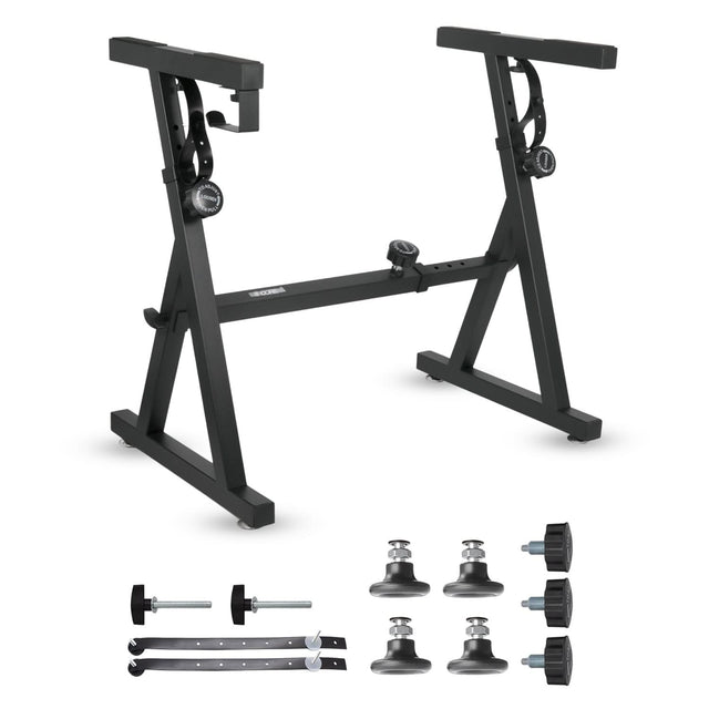 Experience stability and versatility with the 5 Core keyboard stand, designed for all digital pianos, MIDI keyboards, and music workstations. With adjustable height from 22.5” to 34.5” and width from 19.25” to 32.5”, it ensures a perfect playing position whether seated or standing. The sturdy metal frame supports up to 250 lb, while the rubber padding and wide base keep your instrument safe and steady. Easy to fold and carry, this portable music stand is ideal for home studios, classrooms, and stage use — the perfect choice for serious musicians. |