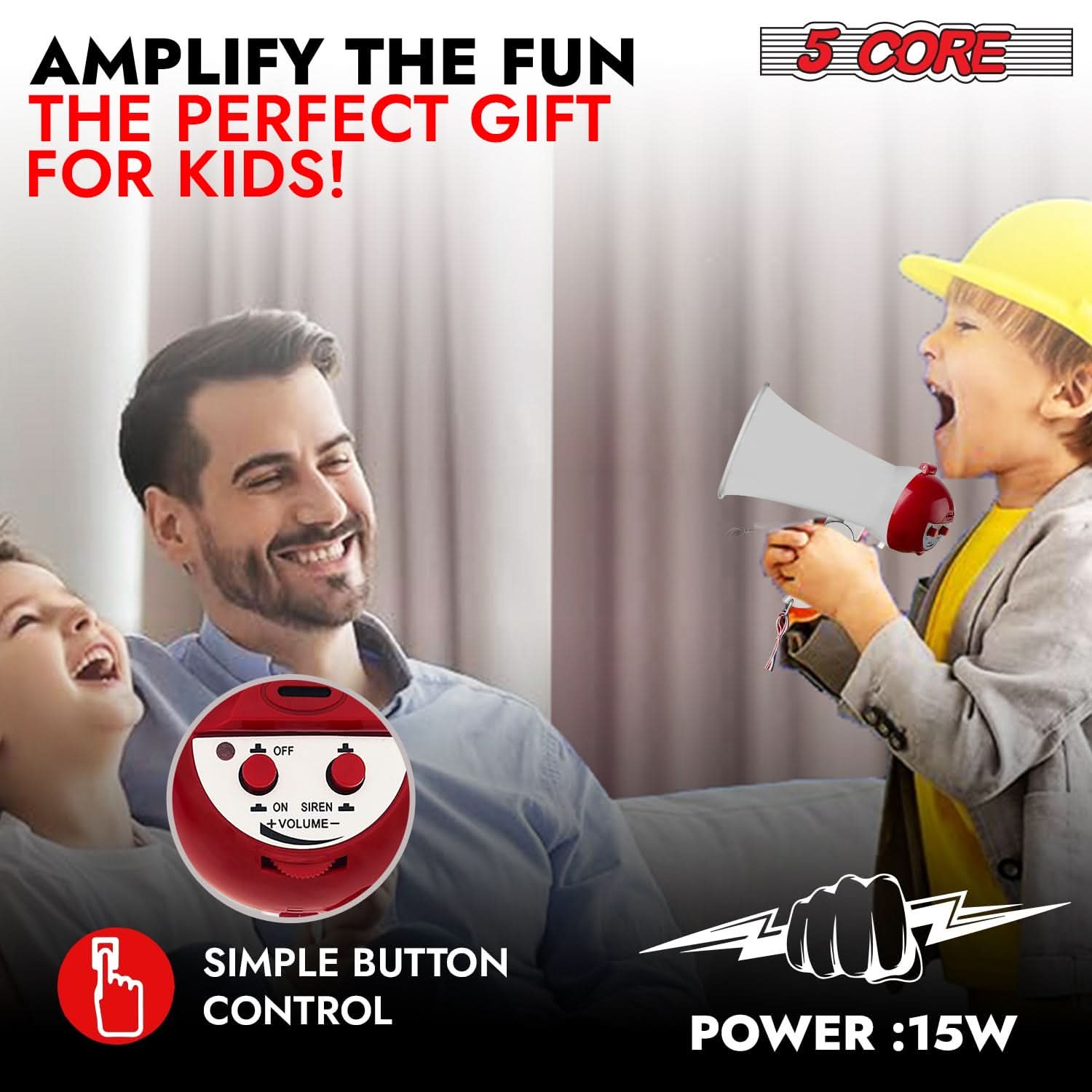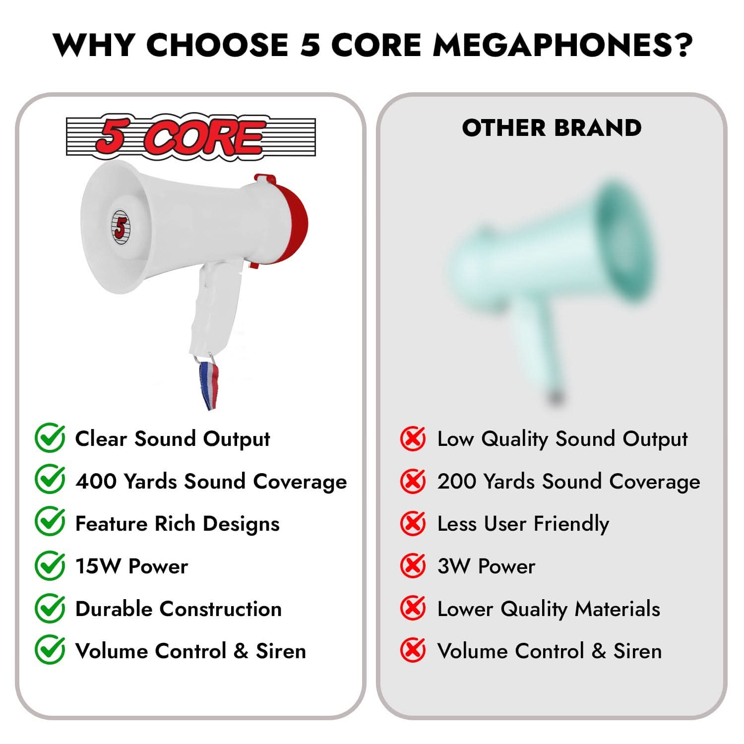 5Core Megaphone 15W Bull Horn Kids PA Speaker w 400 Yards Range Siren Lightweight Loud Mini Megafono