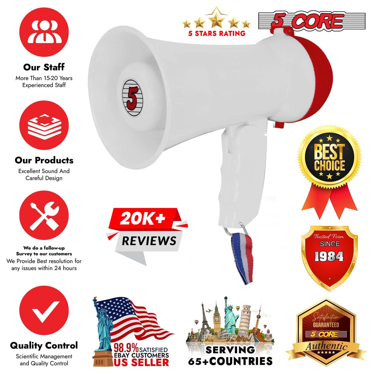 Get your message heard up to 400 yards with the 5 Core mini bullhorn megaphone loudspeaker. This durable all-weather loud Mini Megaphone Bull Horn has features such as Volume Control, Alarm, and ergonomic design, making it one of the best megaphones in its category. Use the small megaphone cheer loudspeaker for organizing rallies, parties, speeches, cheerleading, and crowd control. It's also a thoughtful gift for football or cheerleading coaches. The portable bullhorn loud speaker is lightweight, makes it easy to carry. So, no more yelling! |