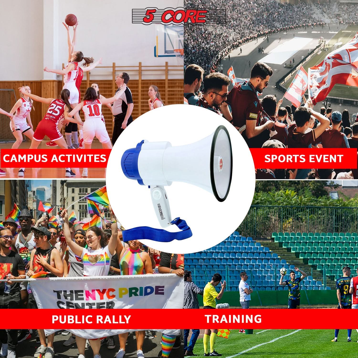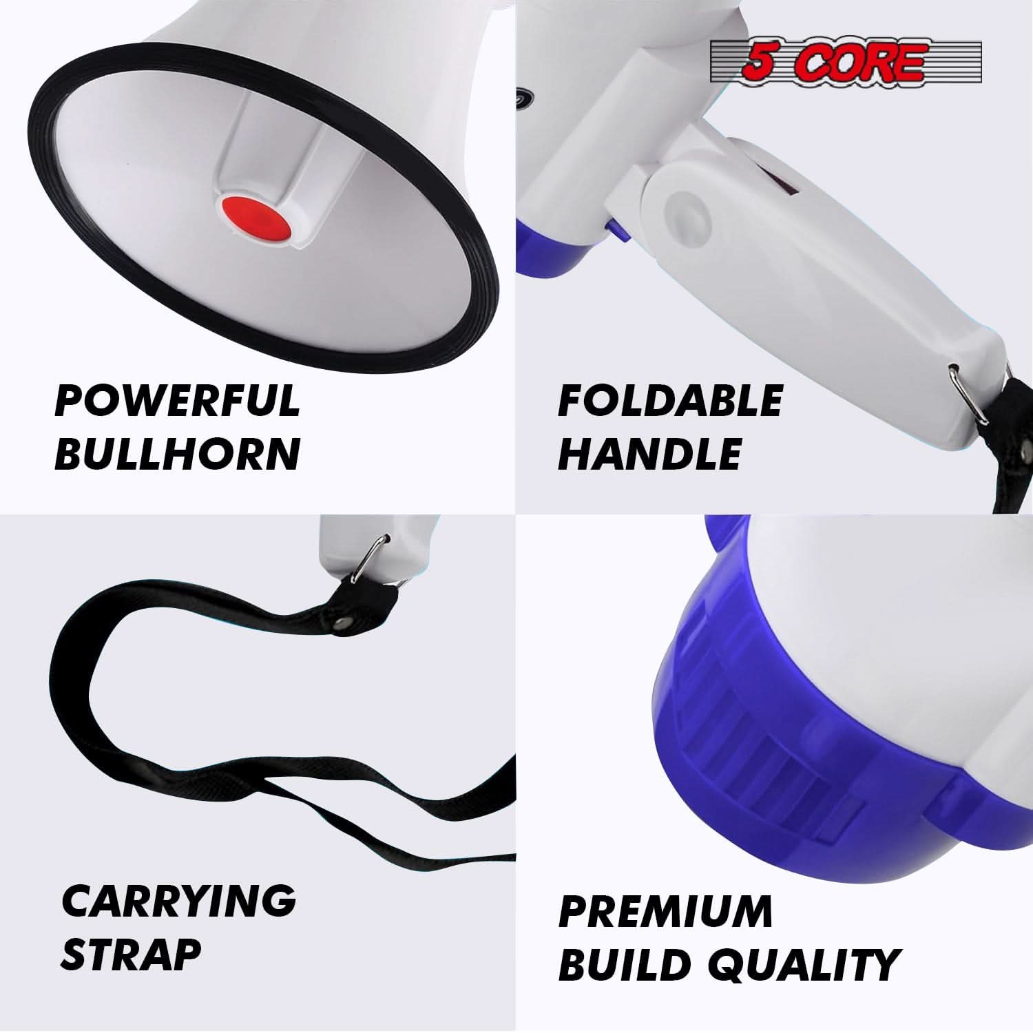 5 Core Megaphone 30W Bull Horn PA Speaker w 800 Yards Range USB Loud Siren Voice Amplifier Portable
