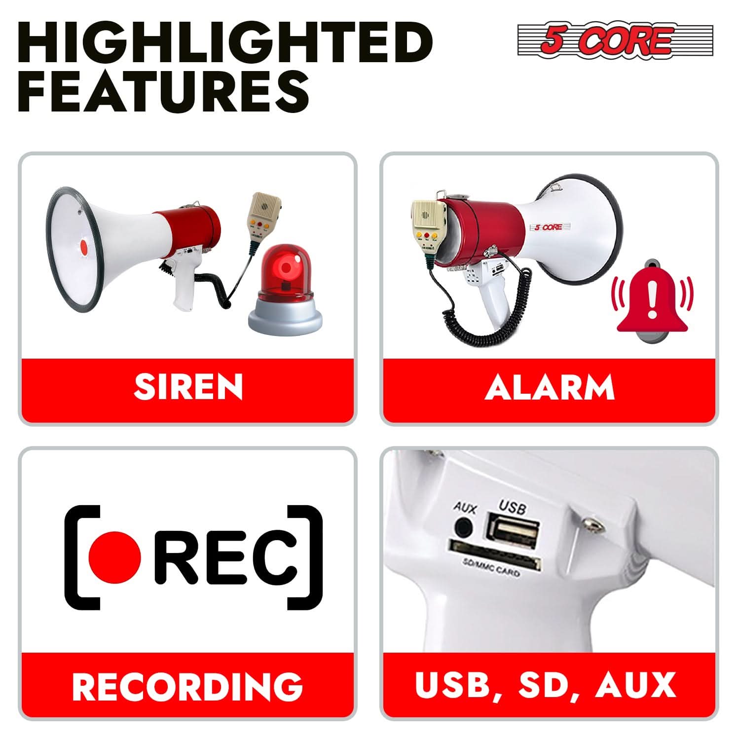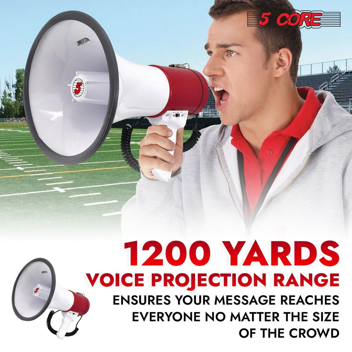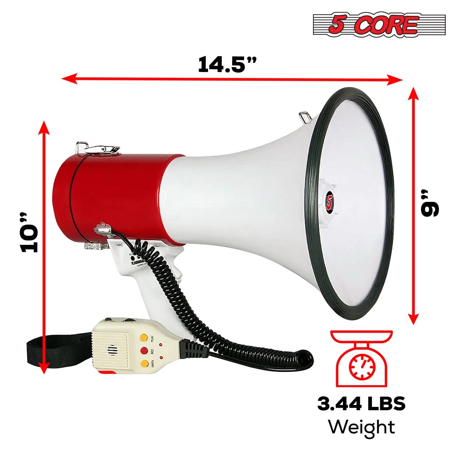5 Core Megaphone 50W Bull Horn Professional PA Speaker w 1200 Yards Range Loud Siren Voice Amp