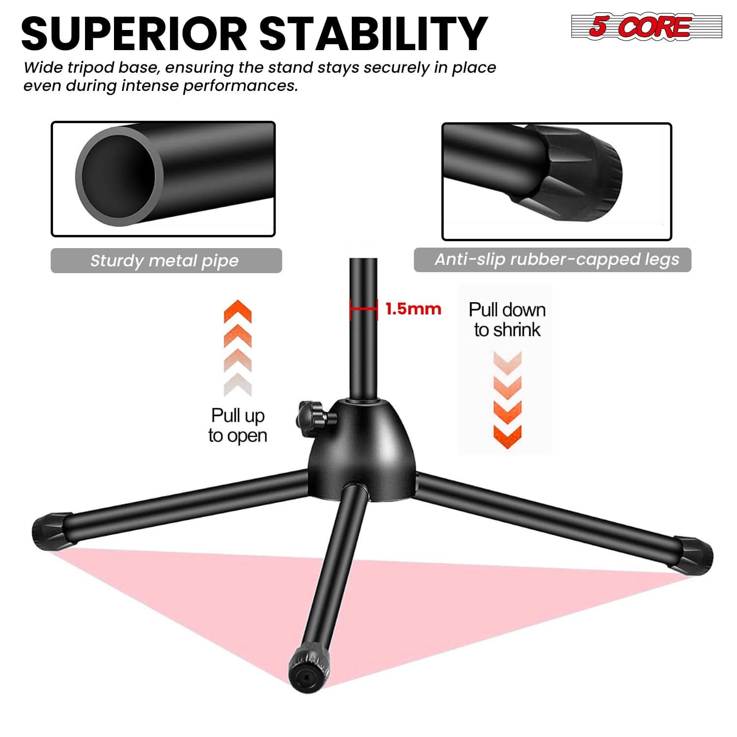 5 Core Music Stand Adjustable Desktop Book Stands w Mic Holder Portable Sheet Holder Metal Bookstand
