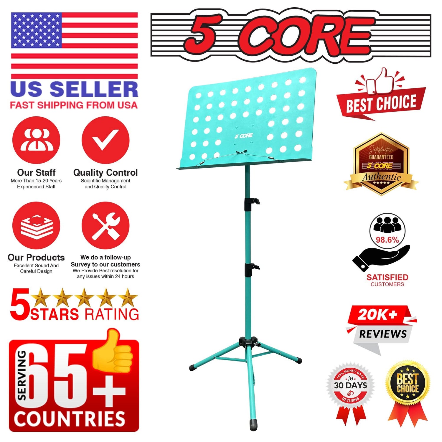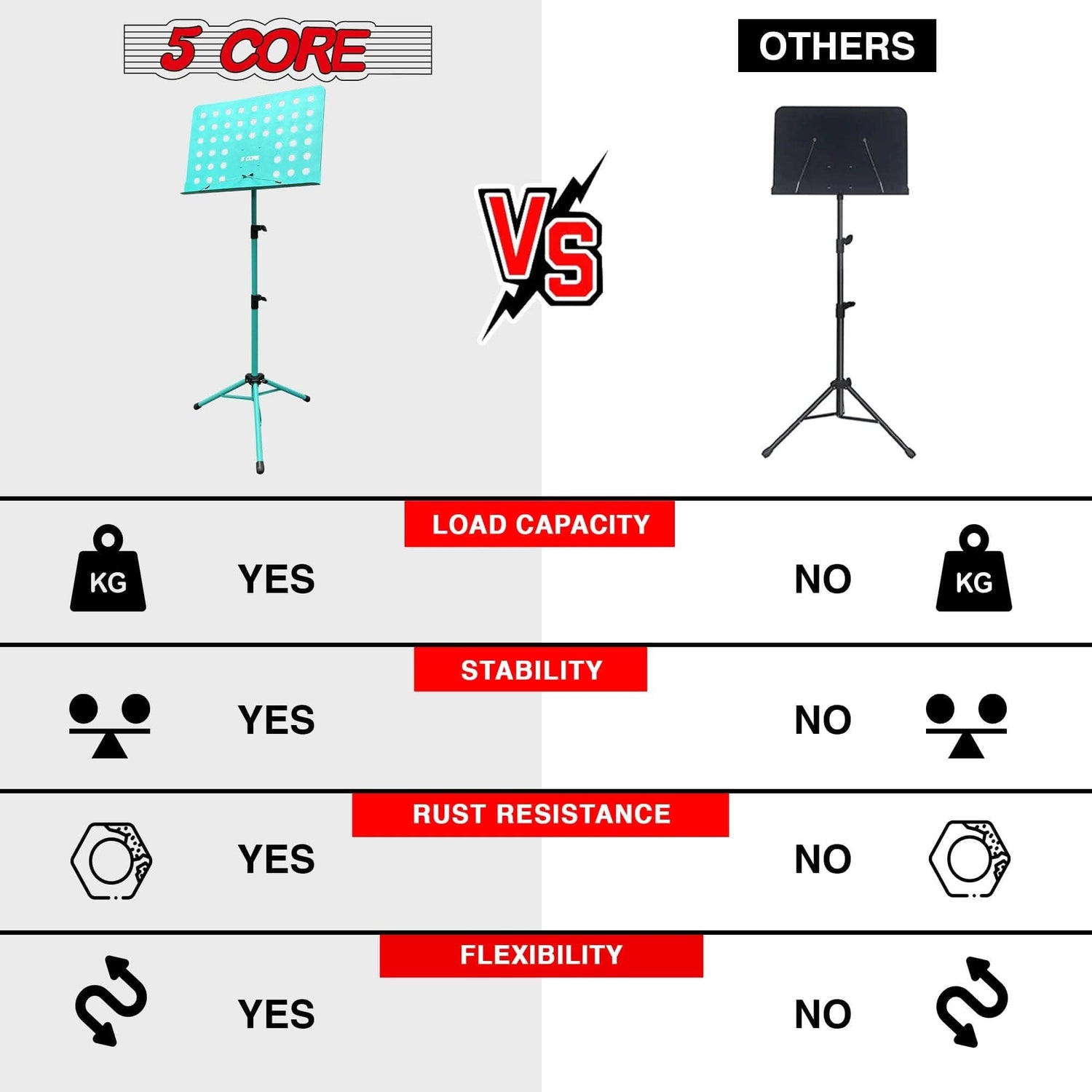 Improve your music experience with the 5 Core music stand. Crafted from durable metal, this music stand for sheet music offers reliable stability with an adjustable height of 29 to 55 inches, ensuring comfort whether you are seated or standing. |