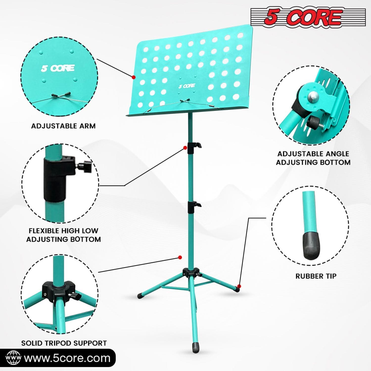 5Core Music Stand For Sheet Music Portable Tripod Adjustable Folding Note Holder