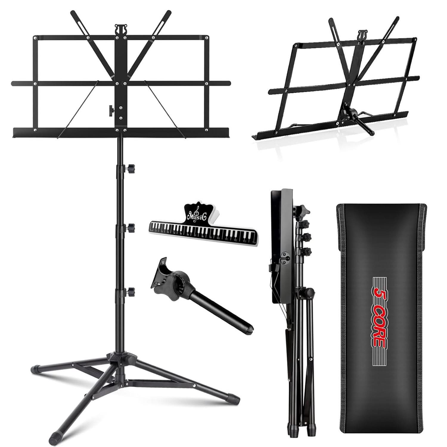 5Core Music Stand For Sheet Music Portable Tripod Adjustable Folding Note Holder