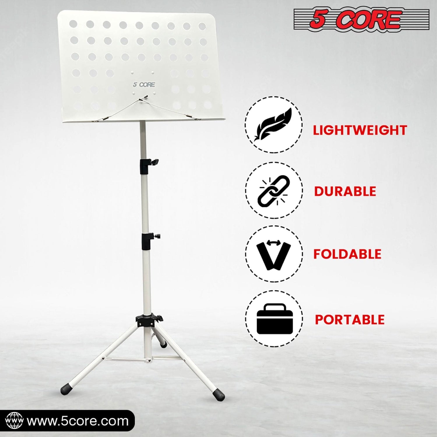 5Core Music Stand For Sheet Music Portable Tripod Adjustable Folding Note Holder WHITE