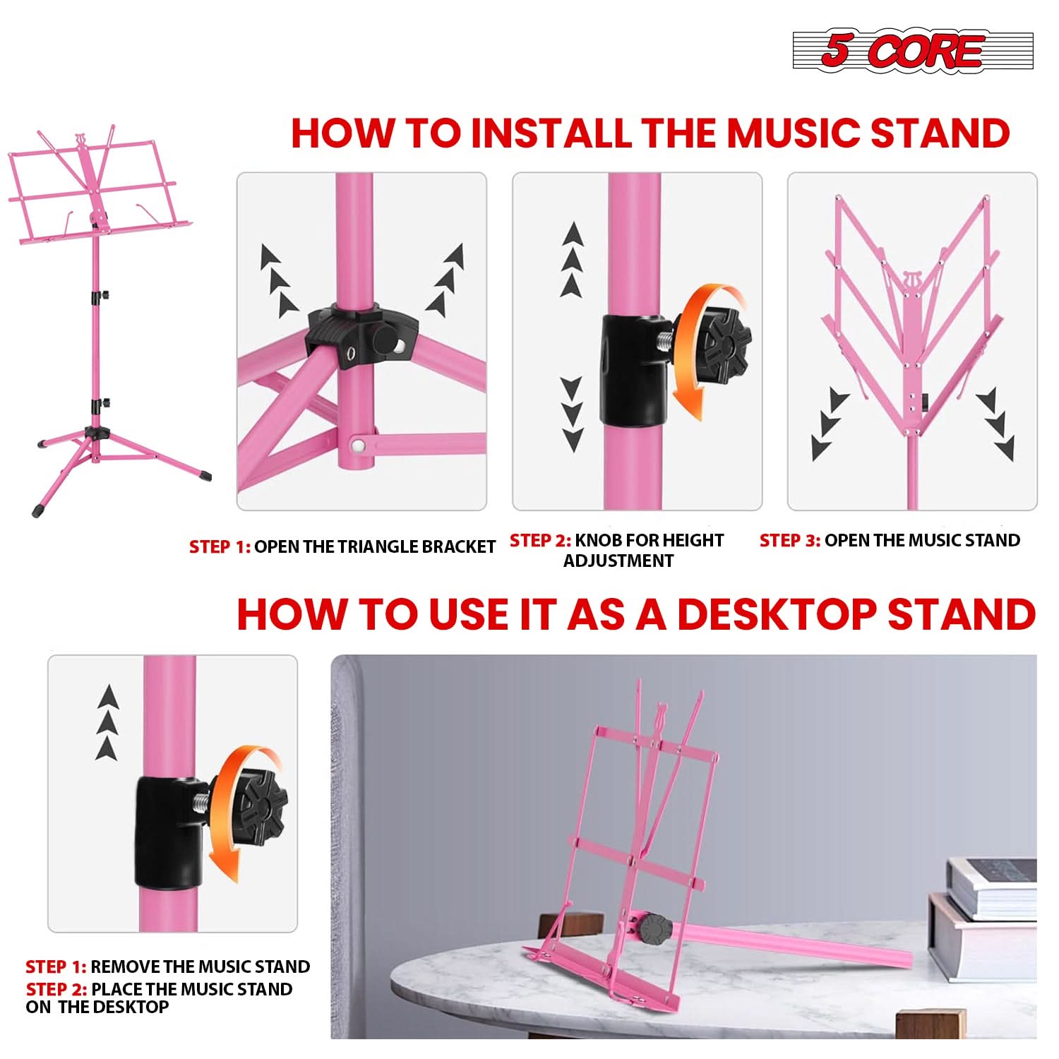 5 Core Music Stand Adjustable Desktop Book Stands Portable Sheet Holder All Metal Foldable Bookstand