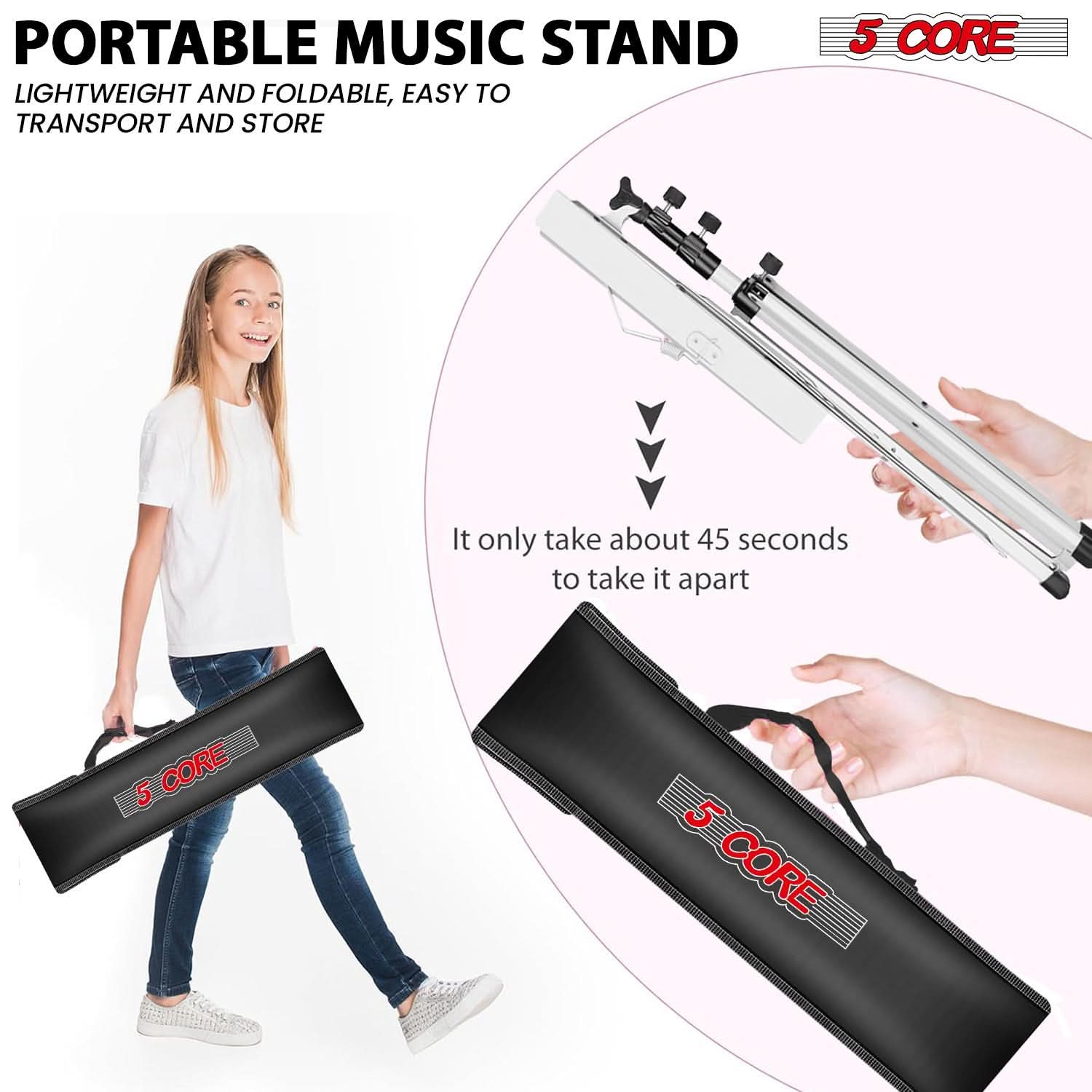 5 Core Music Stand Adjustable Desktop Book Stands Portable Sheet Holder All Metal Foldable Bookstand