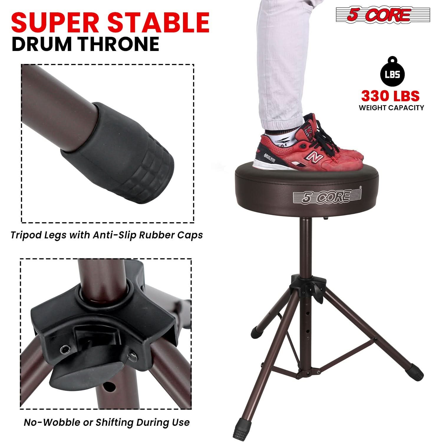5 Core Drum Throne 3" Thick Padded Memory Foam Comfortable Drummer Stool 330Lb Capacity Adjustable