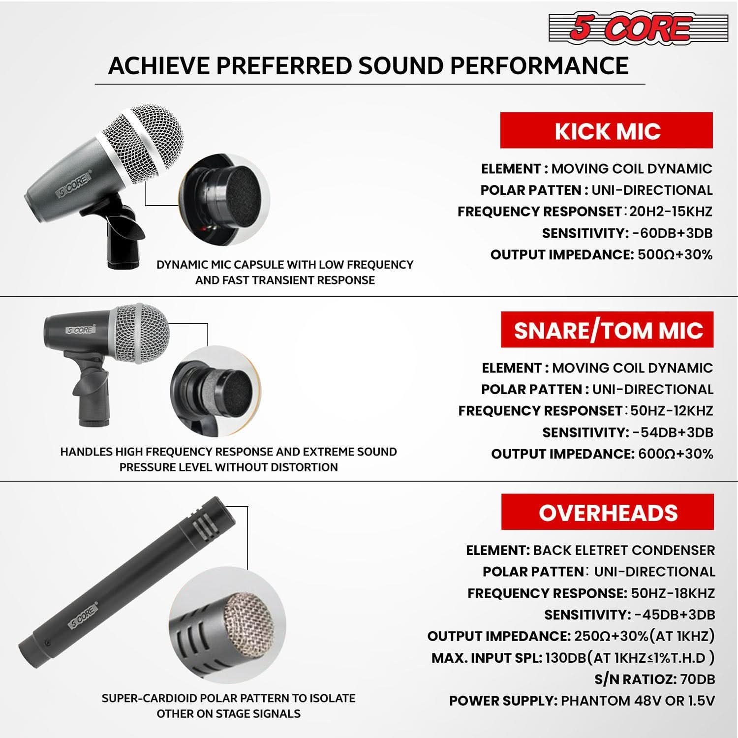 【High Performance】Each mic is engineered to capture everything from low-end punch to sensitive, flat sound.