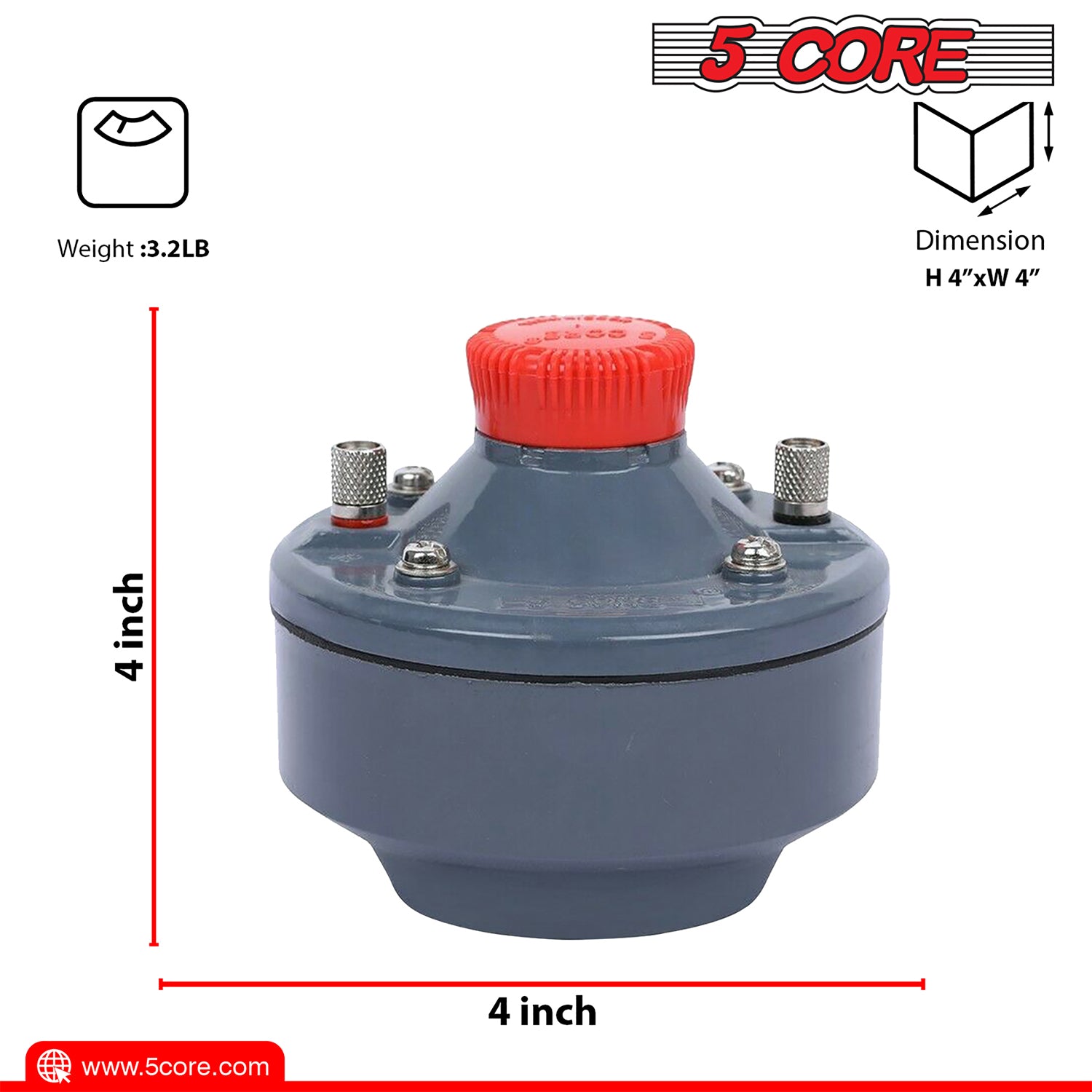 The 5 Core driver unit and trumpet horn are made of durable aluminum to ensure performance in any weather. |