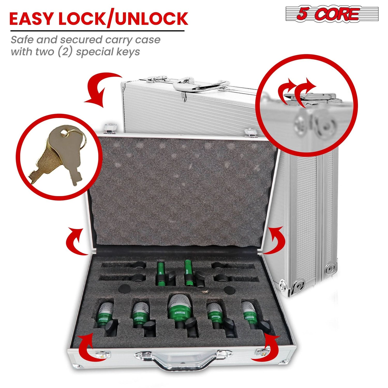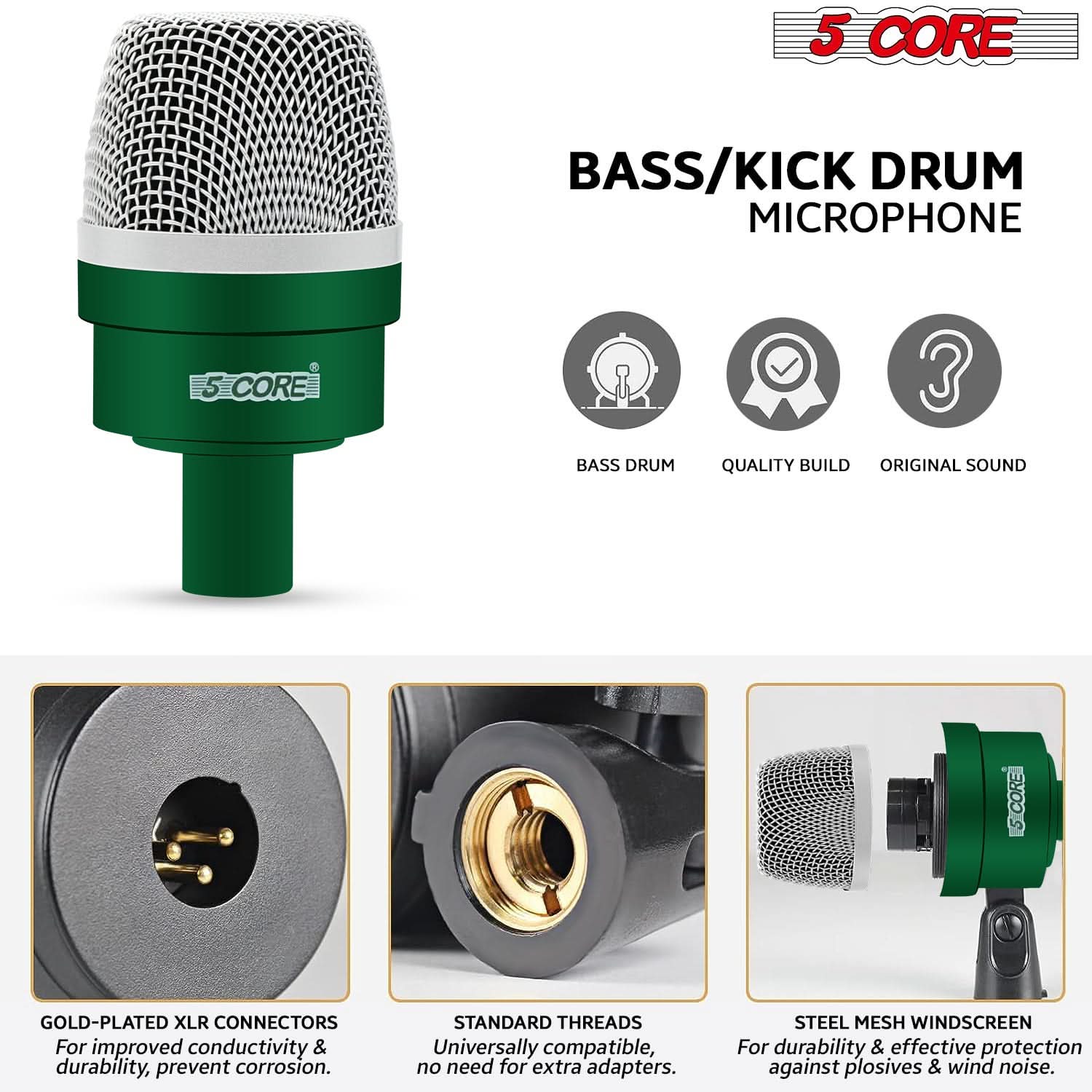 5Core Drum Mic Kit 7 Pcs Kick Bass Tom Snare Dynamic Microphone Instrument Mics Set Green