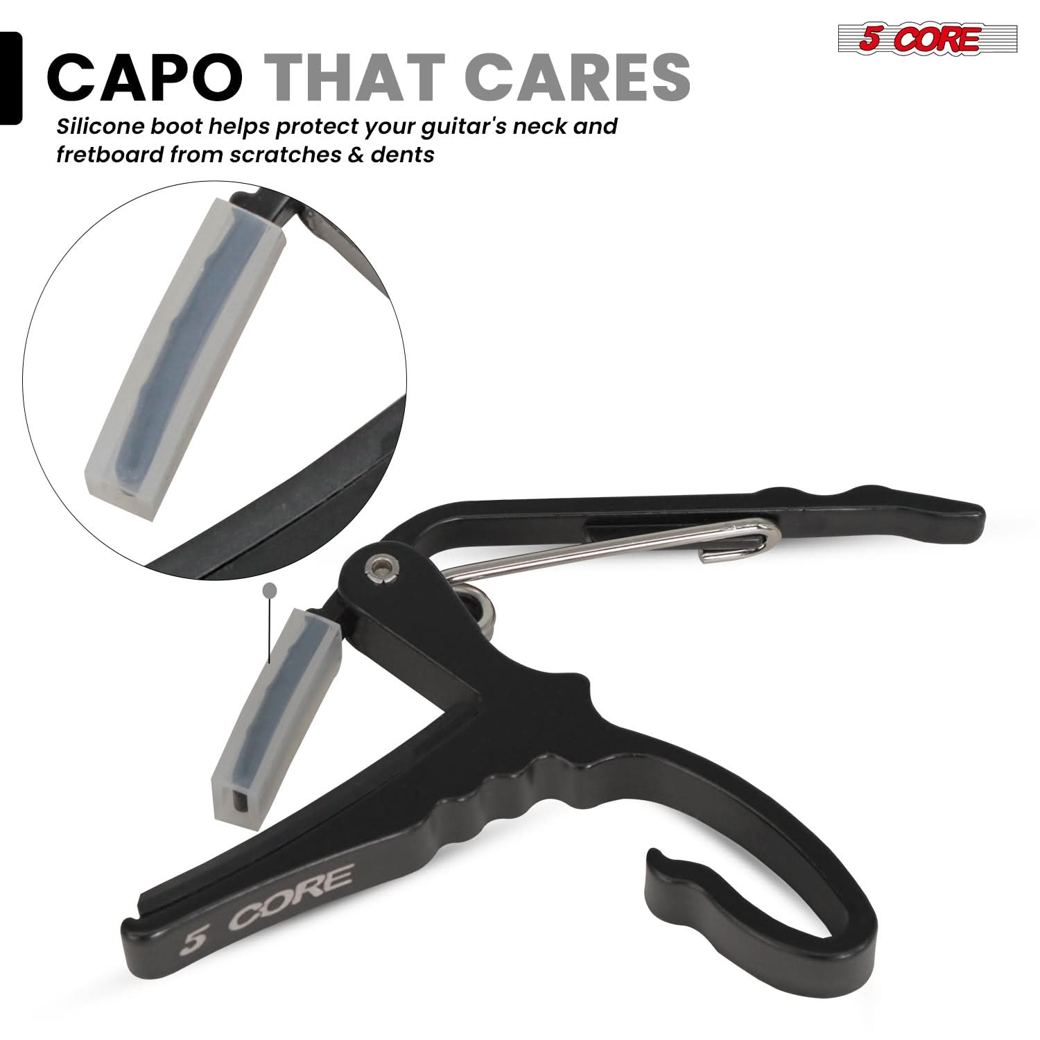 The precision-engineered spring applies even pressure, preventing buzzing and ensuring stable tuning—perfect for any acoustic guitar capo 6 string or electric guitar kapo. |