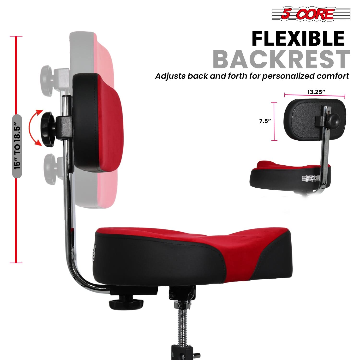 5 Core Drum Throne w Backrest 4" Padded Adjustable 26.5" Drummer Stool w Velvet Top 441Lb Capacity