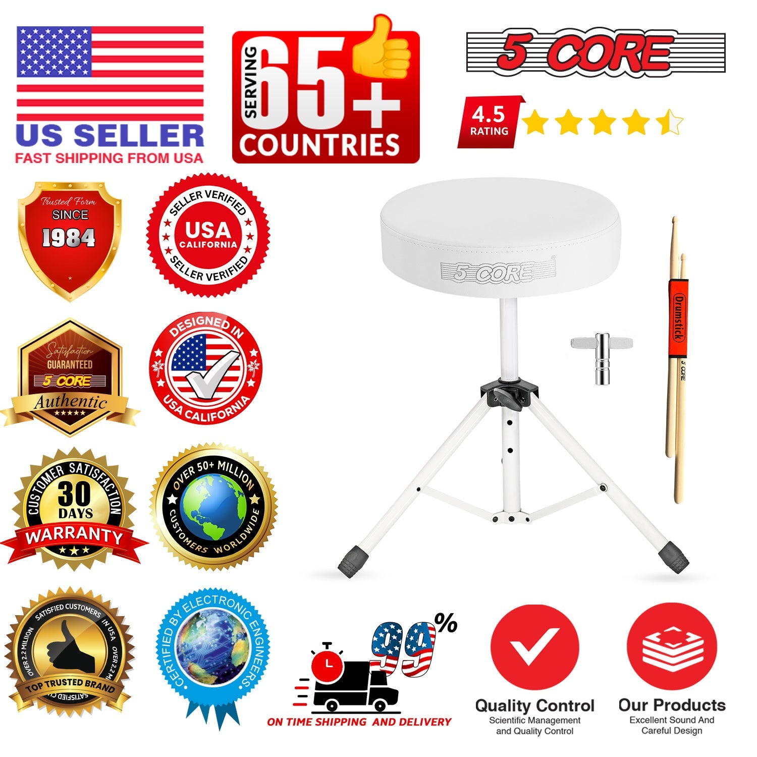 5 Core Drum Throne 3" Thick Padded Memory Foam Comfortable Drummer Stool 330Lb Capacity Adjustable