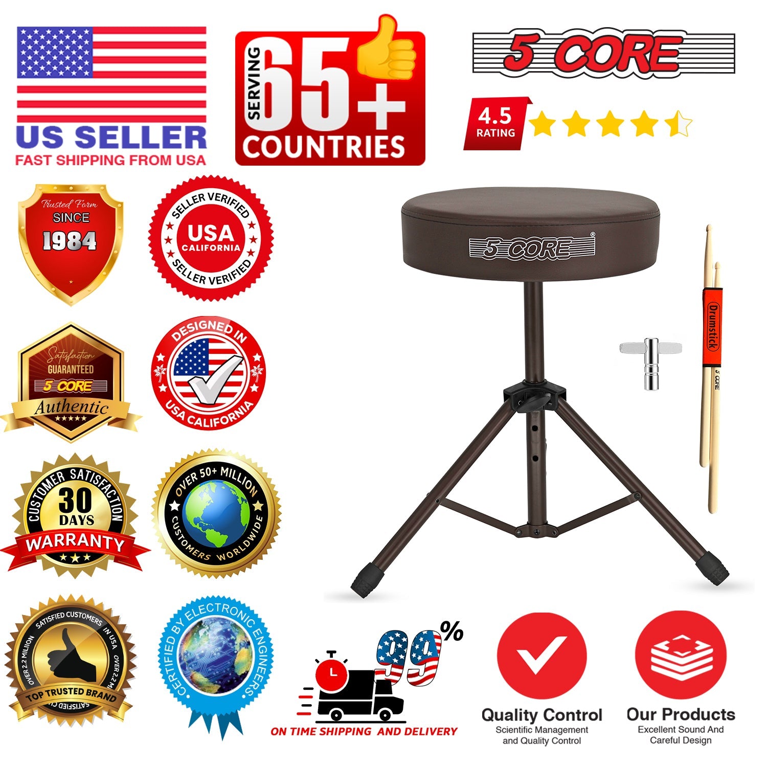 5 Core Drum Throne 3" Thick Padded Memory Foam Comfortable Drummer Stool 330Lb Capacity Adjustable
