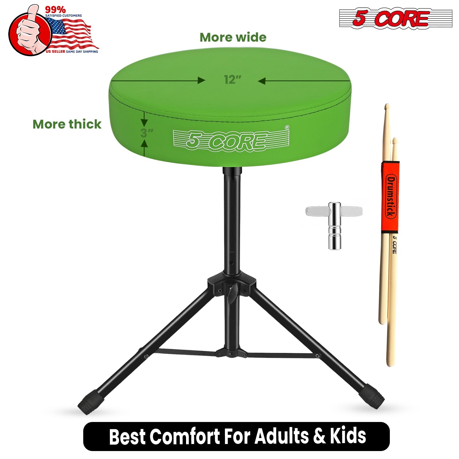 5 Core Drum Throne 3" Thick Padded Memory Foam Comfortable Drummer Stool 330Lb Capacity Adjustable