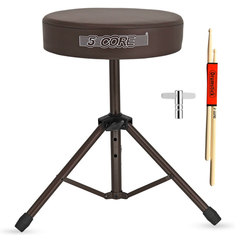5Core Drum Throne Padded Adjustable Guitar Stool Drummer Seat for Adults & Kids BROWN