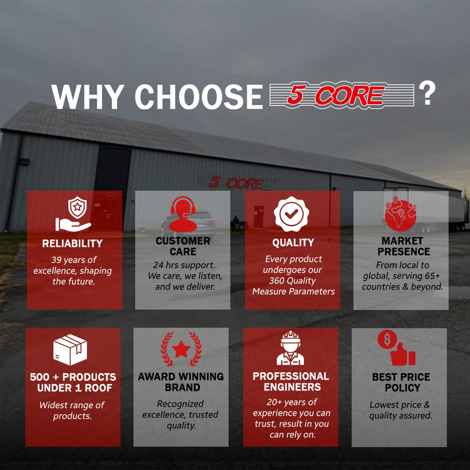 5 Core, ISO Certified headquartered in California, warehouse in Ohio, USA. Offering 600+ products since 1984. Tested and Certified Products, ensuring highest quality and reliability. |