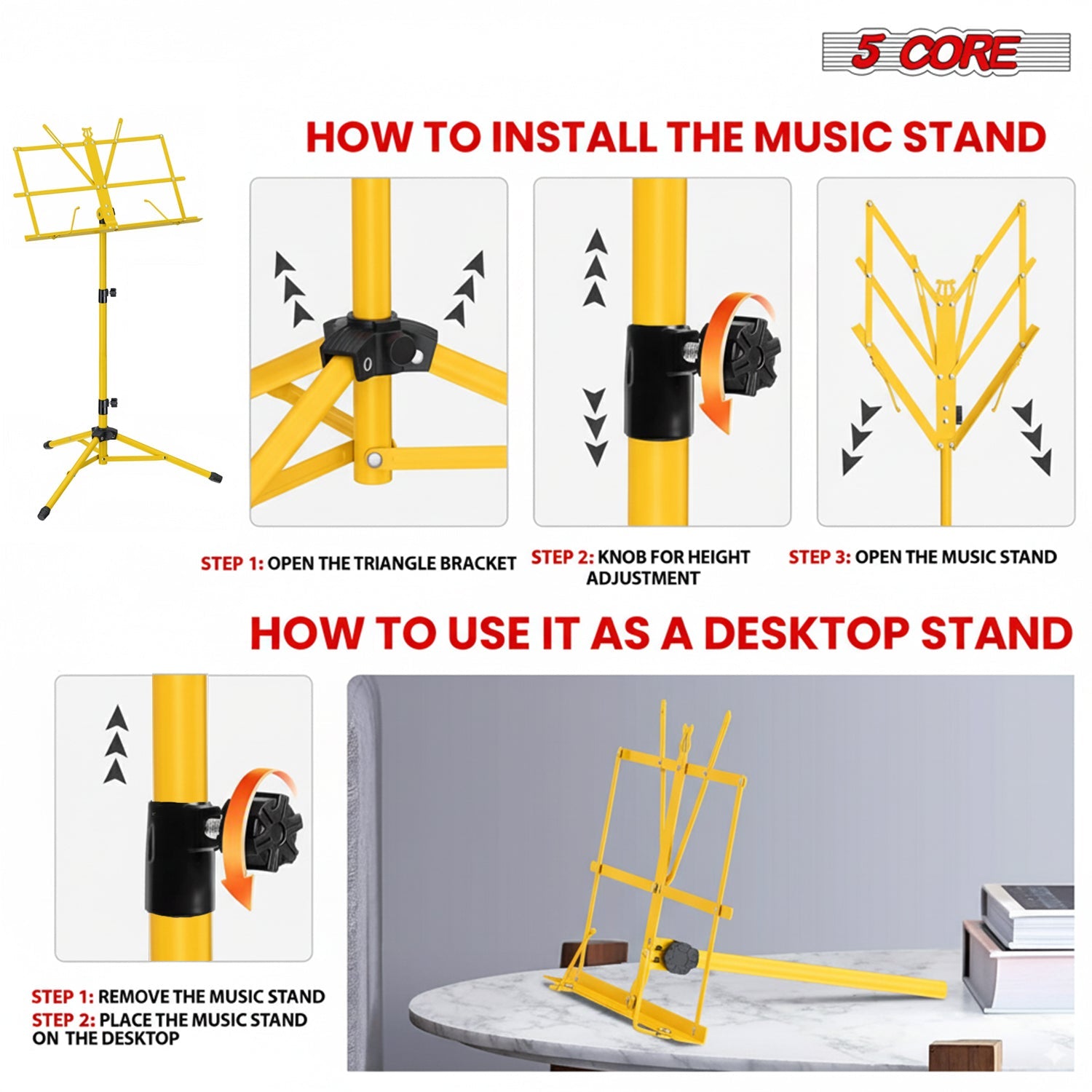 5 Core Music Stand Adjustable Desktop Book Stands Portable Sheet Holder All Metal Foldable Bookstand