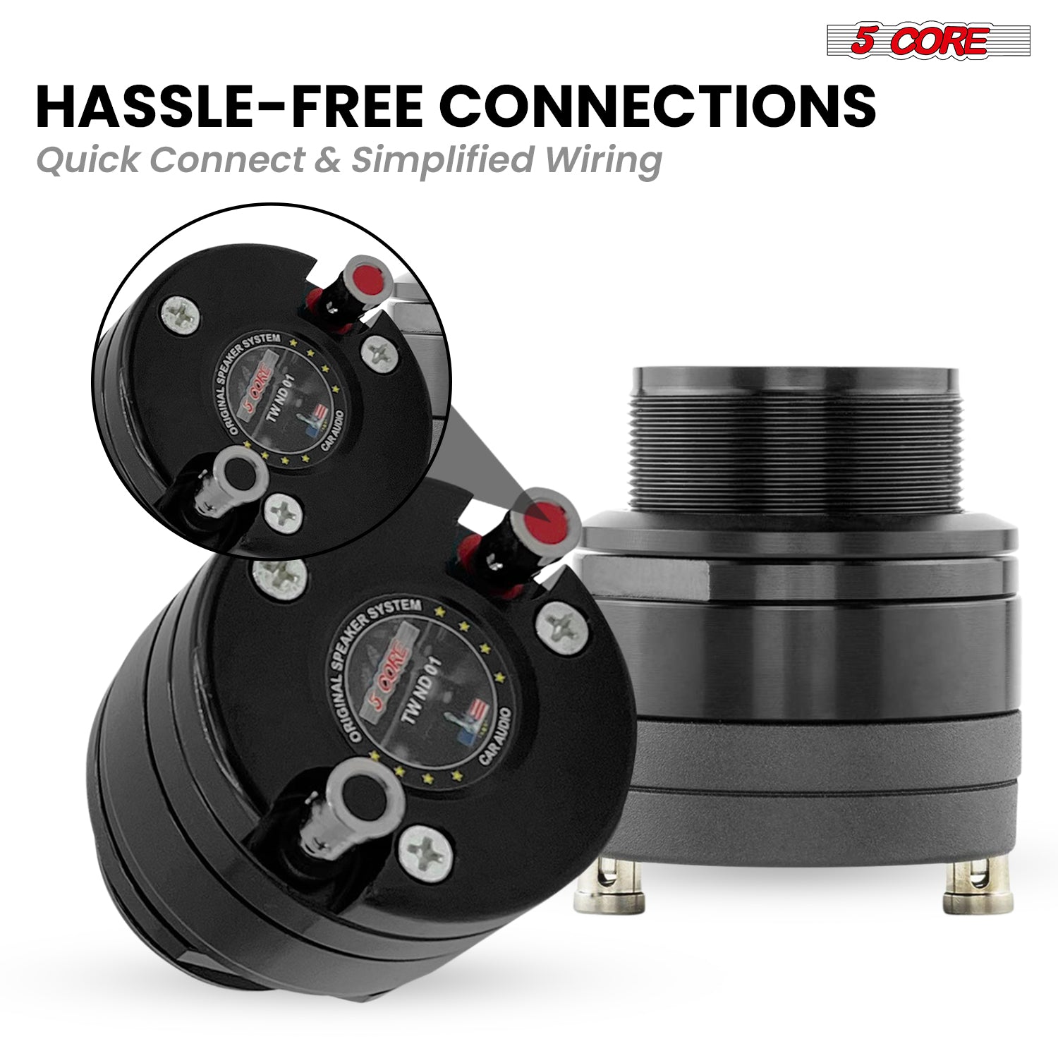 The built-in push-down terminal allows quick, tool-free wiring, ensuring a secure speaker wire connection that resists vibration—ideal for clean installs and long-term tweeter speakers performance. |