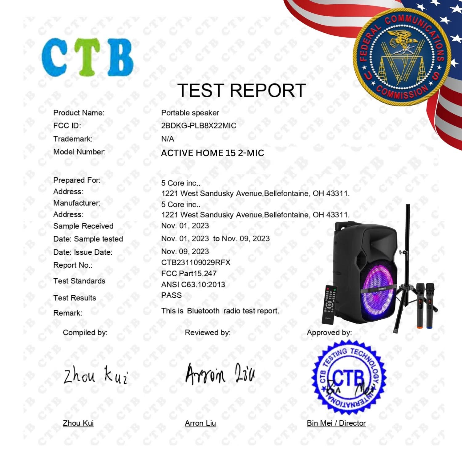 5Core 15 inch PA Portable Bluetooth Party Speaker Karaoke Boombox + 2 Wireless Mics
