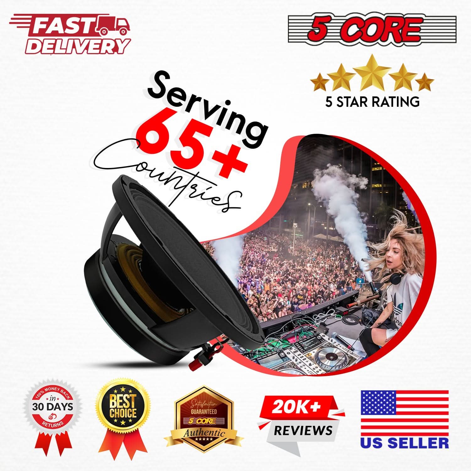 5 CORE 10 Inch Subwoofer Speaker 600W Max 4 Ohm Full Range Replacement DJ Bass Loudspeaker