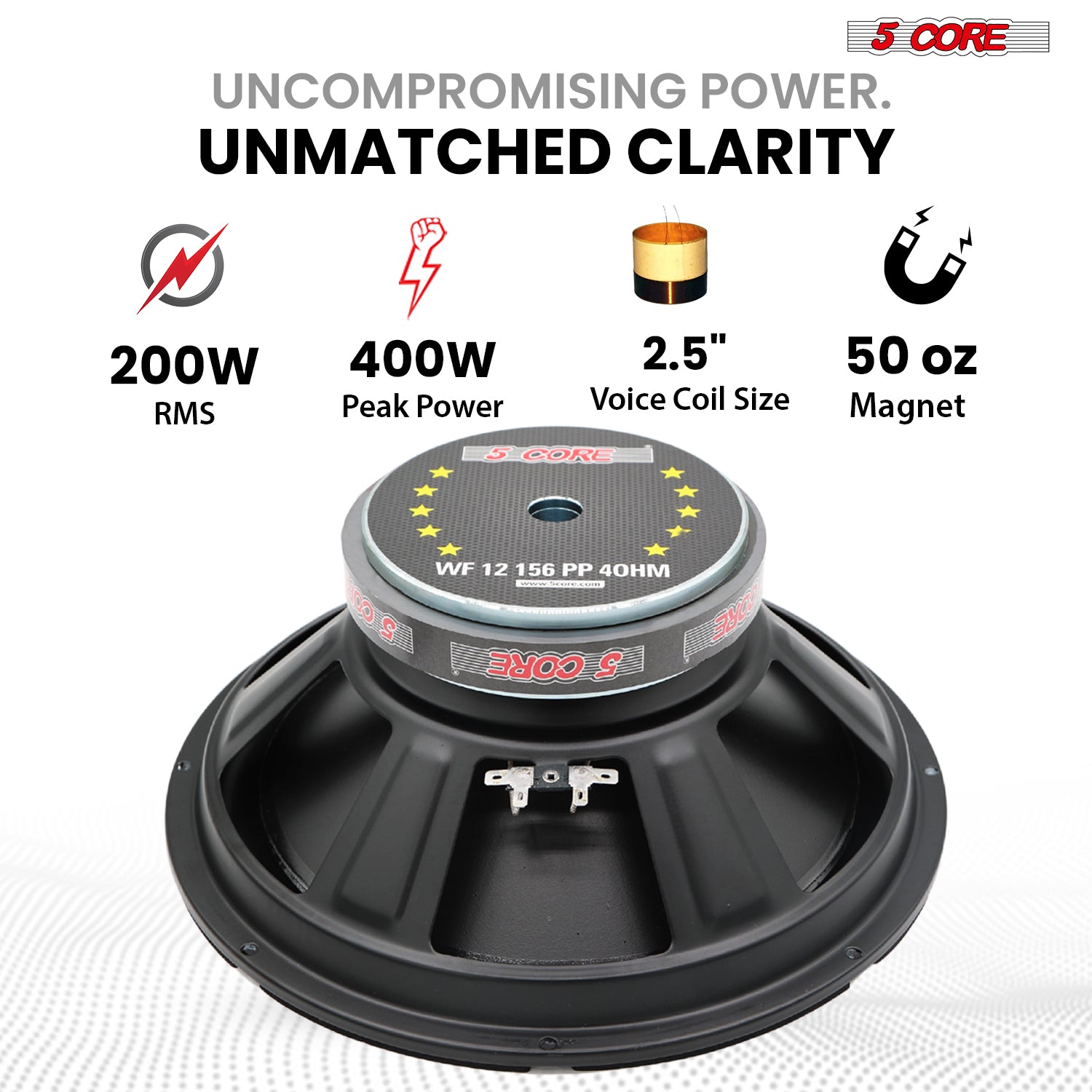 5 Core 12 Inch Subwoofer 400W Car Audio Woofer 4 Ohm Replacement Deep Bass Component Loud Speaker