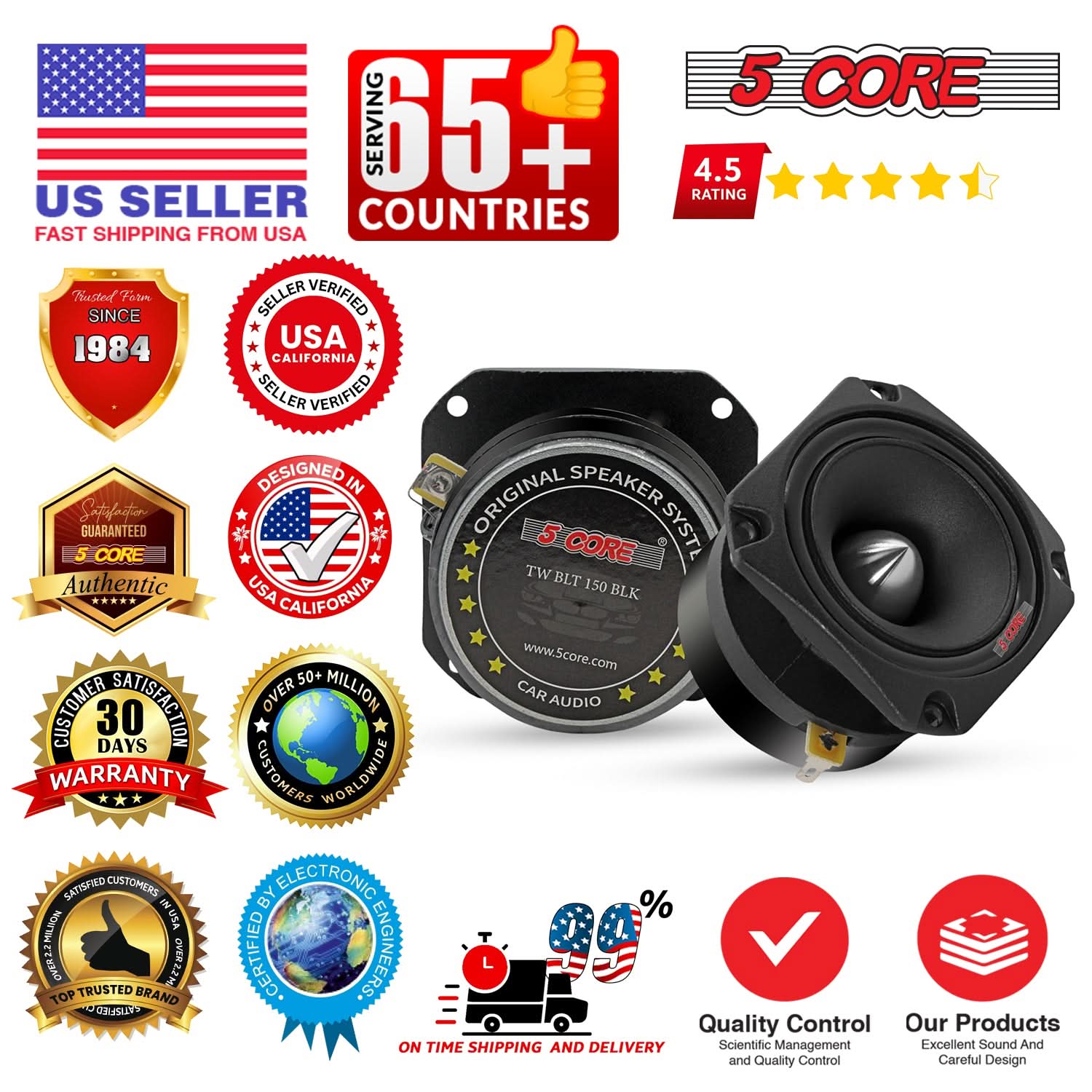 5Core Tweeters Speakers Car Audio Pair 600W Peak 3.5 Inch Super Tweeter Bullet