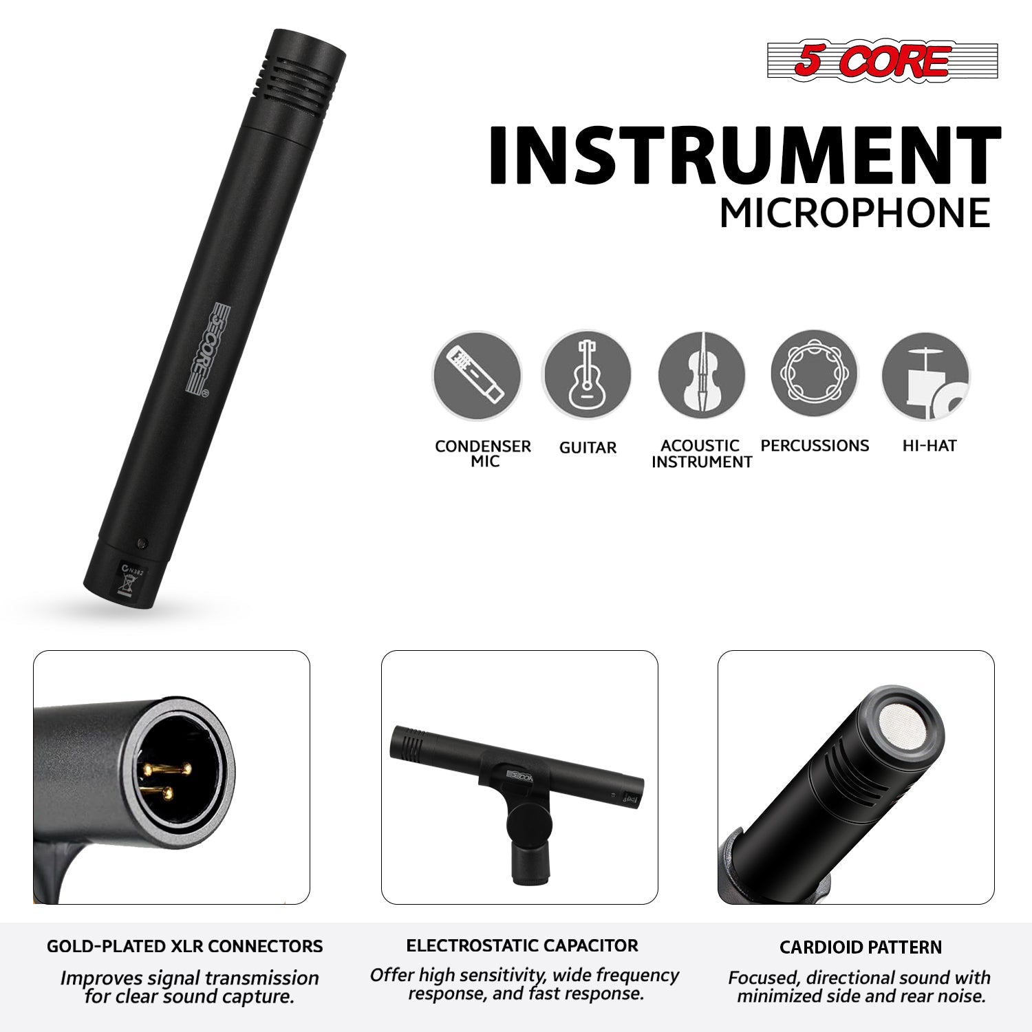 5 Core Drum Microphone Kit 7Pc All Metal Drummer Mics Tom/Snare & Cymbals Wired Instrument Drums Set