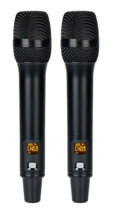 - Dual high quality wireless microphones and 2pcs Microphone holders on the top