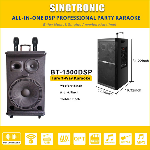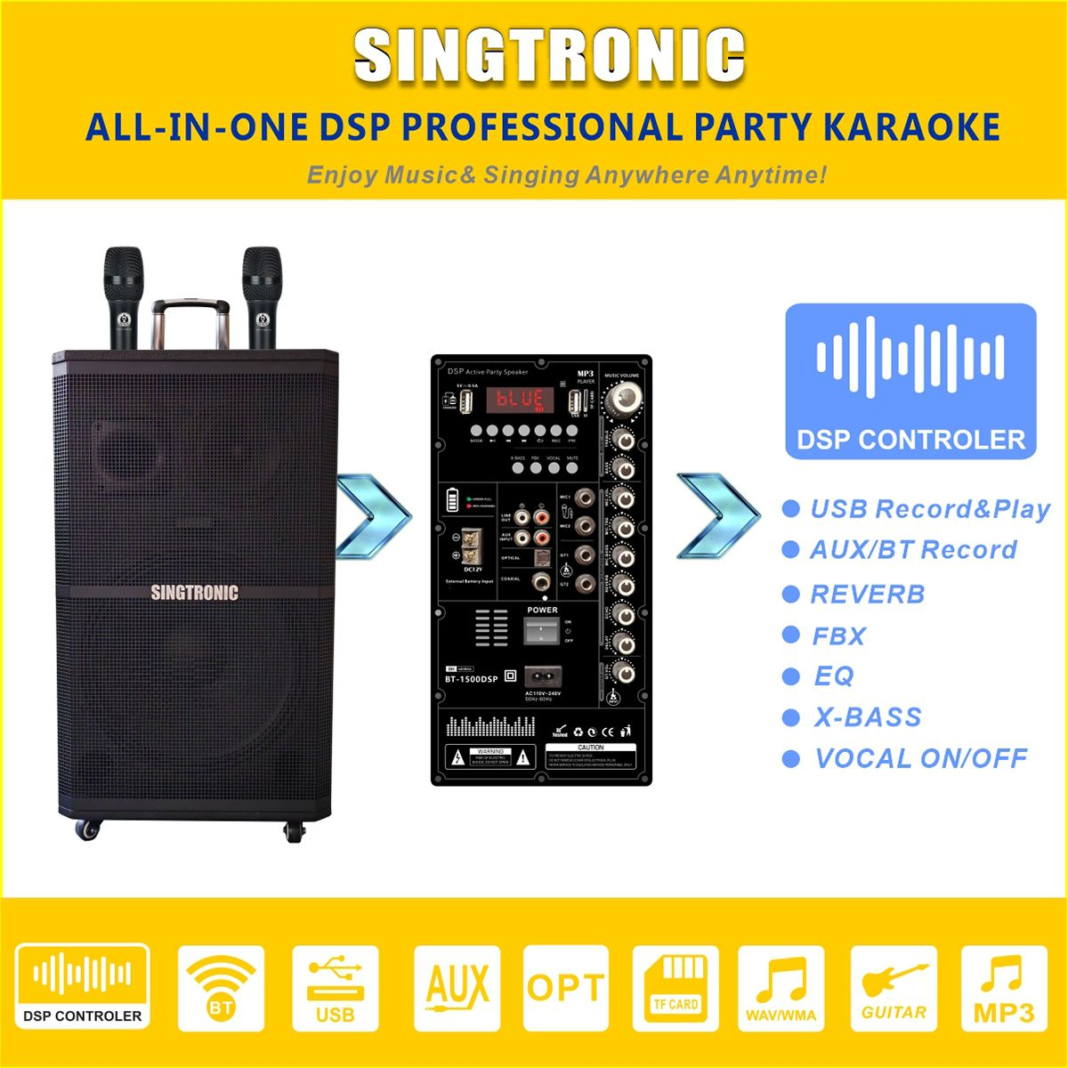 Singtronic BT-1500DSP Professional Rechargeable DSP 15" Karaoke Speaker With 2 UHF Wireless Mic.