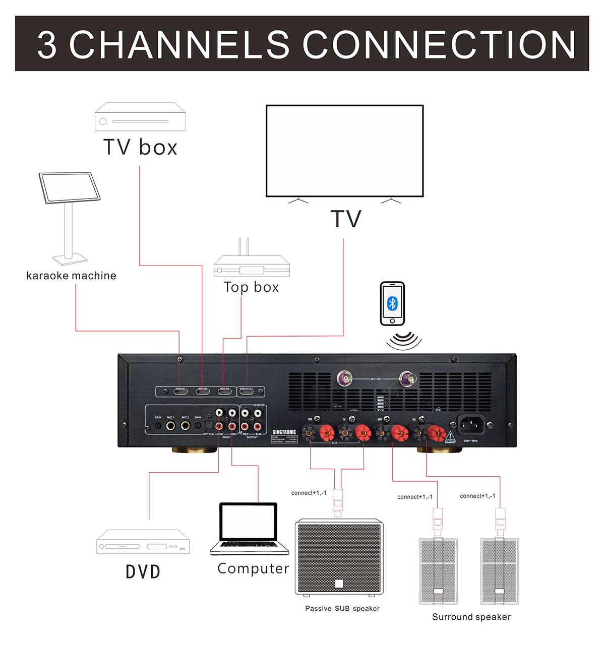 - Bluetooth Function send/receive from any device (Iphone, Ipad, Android, Youtube, Karaoke Apps)