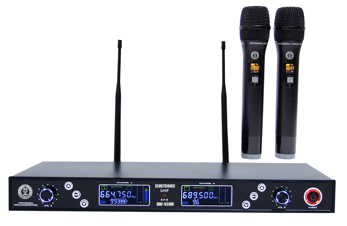 Singtronic UHF-550M Professional Dual UHF 900MHz Wireless Microphone Karaoke System Model: 2025 Built in Feedback Eliminator